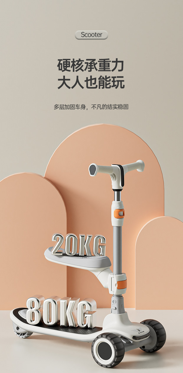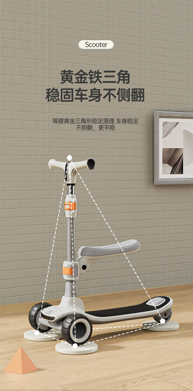 新款儿童滑板车1-3-6-10岁男女宝宝滑滑车可折叠三合一溜溜车