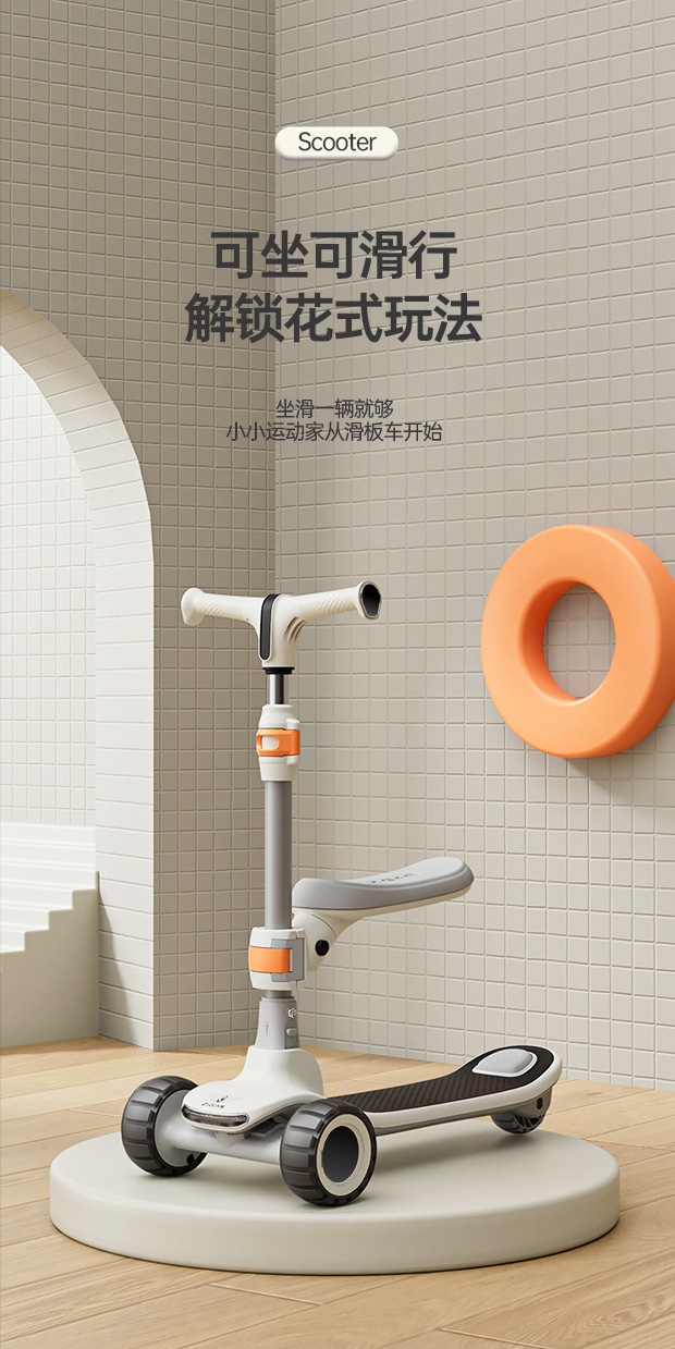 儿童滑板车带座三合一滑行折叠滑步车1-3-12岁可坐可滑灯光溜溜车