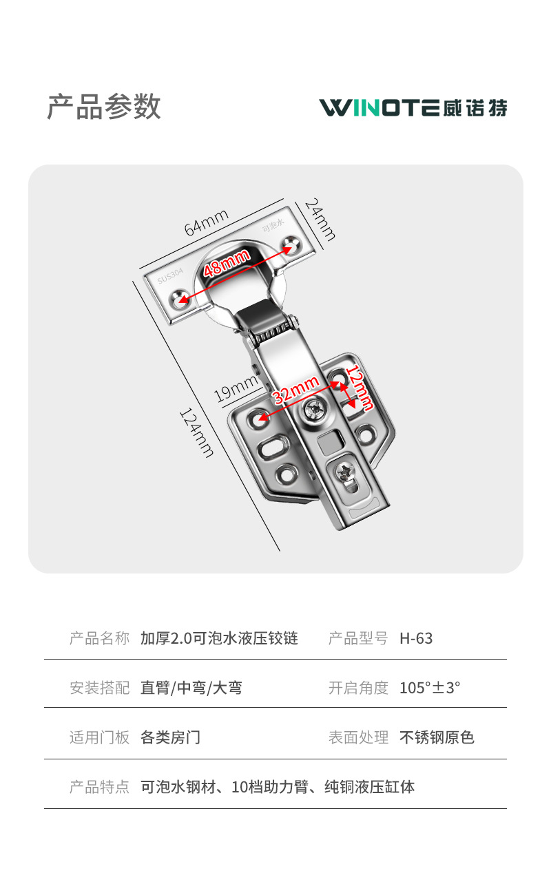 水を入れることができるステンレスヒンジの戸棚を厚くして、油圧ヒンジのたんすのドアのヒンジを減衰します。