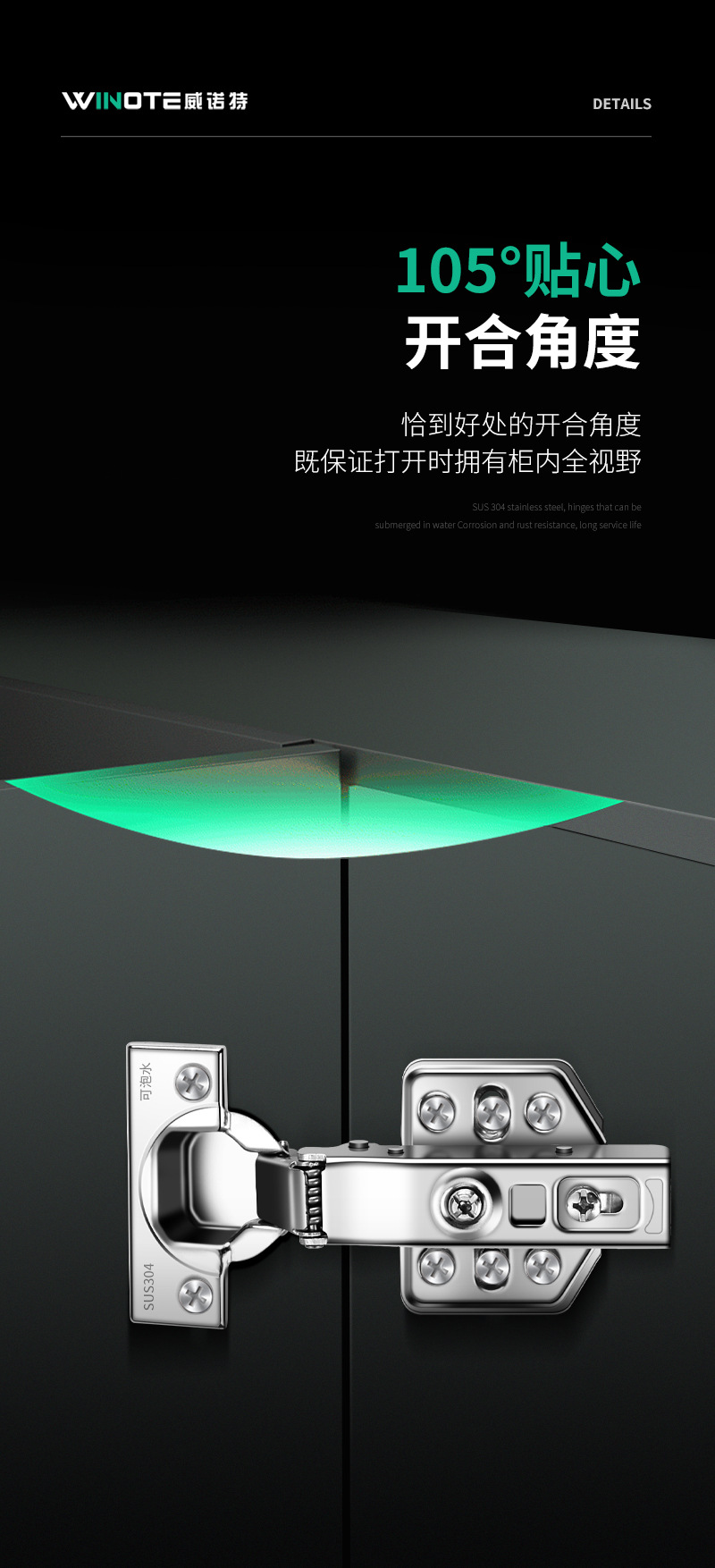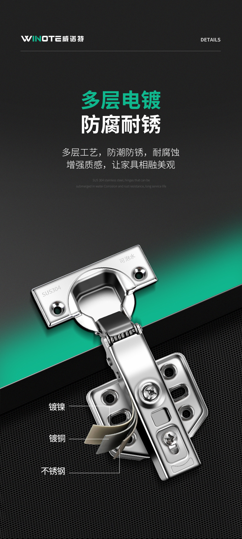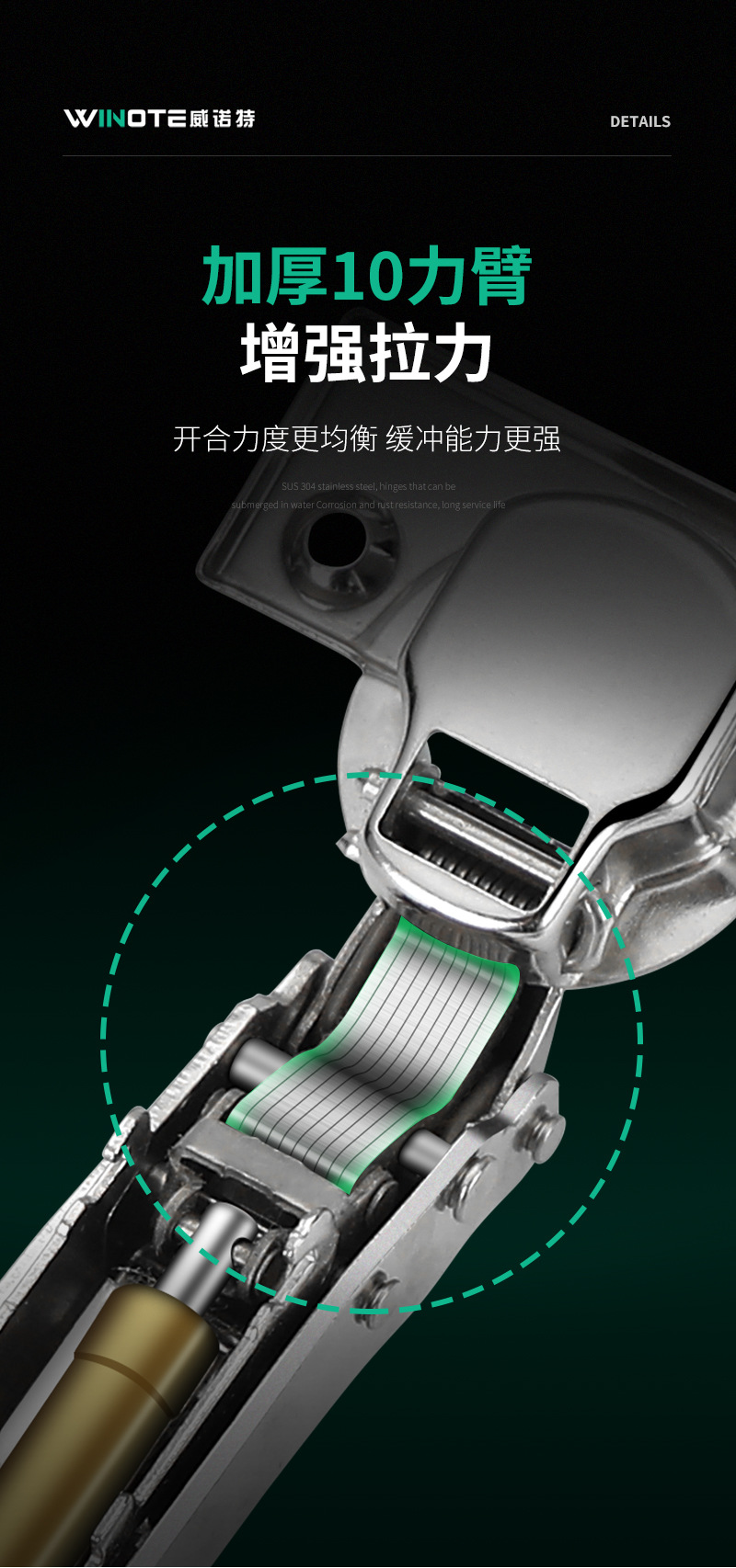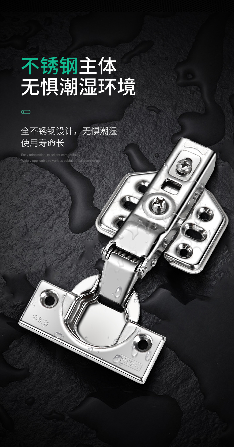 厂家批发橱柜柜门304不锈钢铰链缓冲阻尼液压弹簧合页加厚二段力