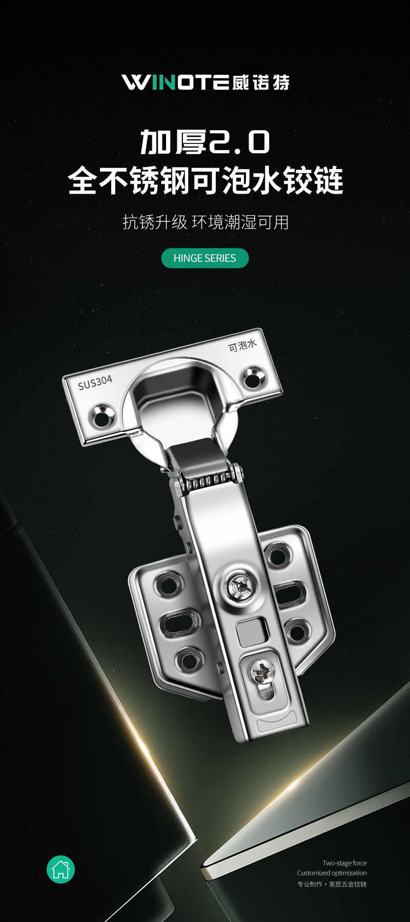 厚みのある2段階耐力、耐水性304ステンレス鋼ヒンジ、キャビネットとワードローブのドア用、静音緩衝ダンピングドアヒンジ