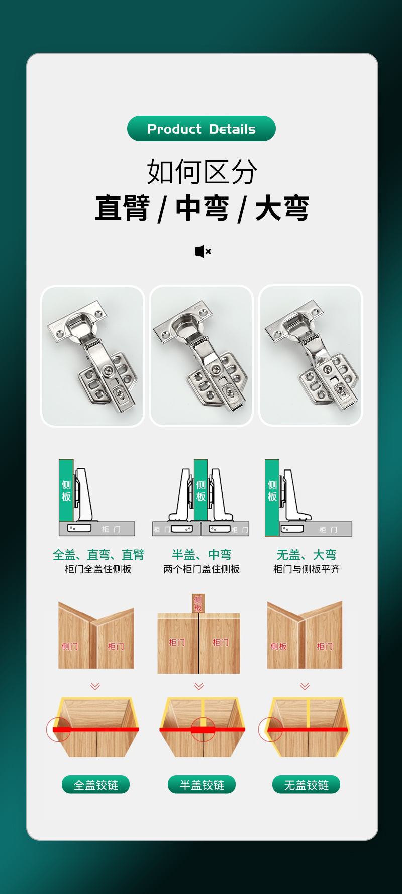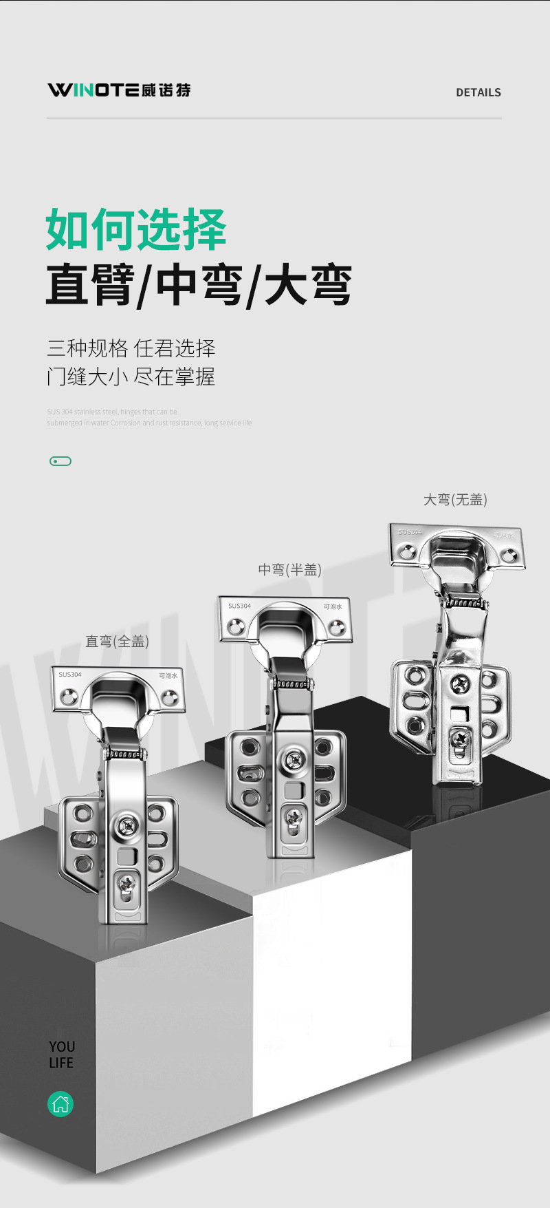 三段力阻尼铰链小角度缓冲橱柜衣柜门液压不锈钢合页弹簧合叶批发