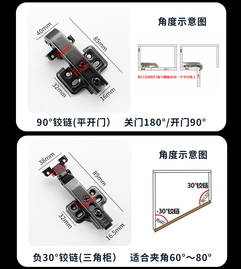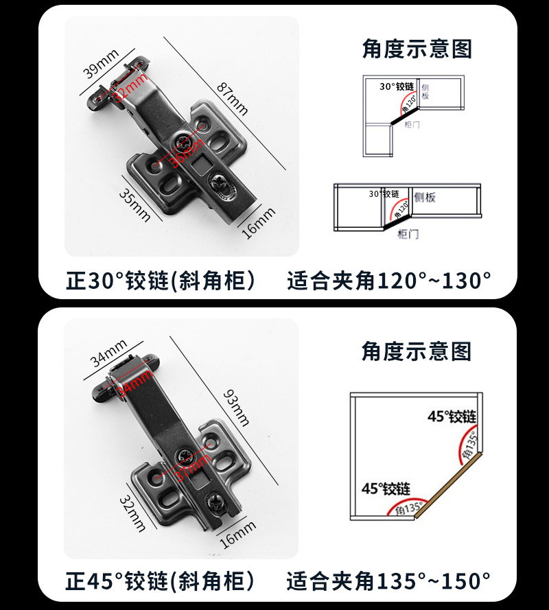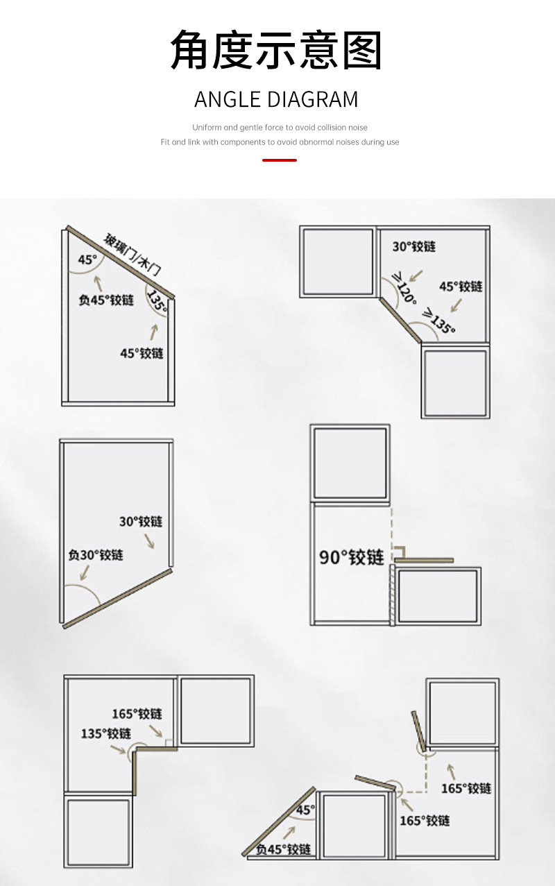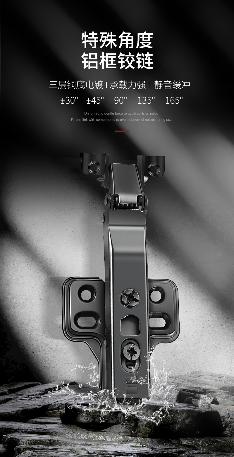 45度ガラスドアヒンジ165極簡アルミ枠ドアヒンジ正負30斜角五角キャビネットキャビネット専用ドアヒンジ