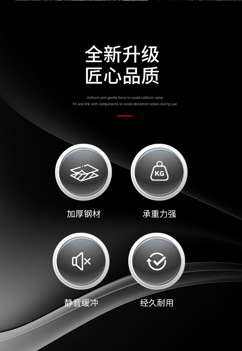 厚い宝鋼黒色緩衝三節レール戸棚たんす引き出しレール静音スチールボールダンピングレールシュート