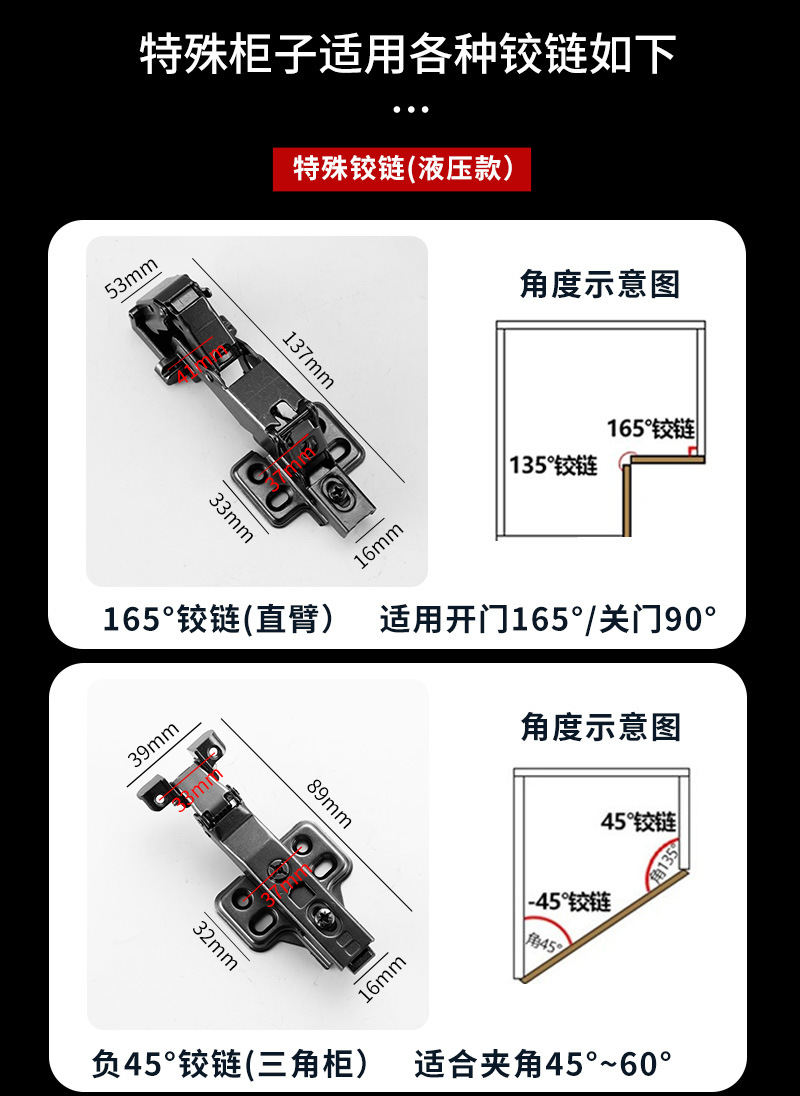 165 度 180 度大角度バッファヒンジ卸売キャビネットワードローブサイレントダンピング特殊角度油圧ヒンジ