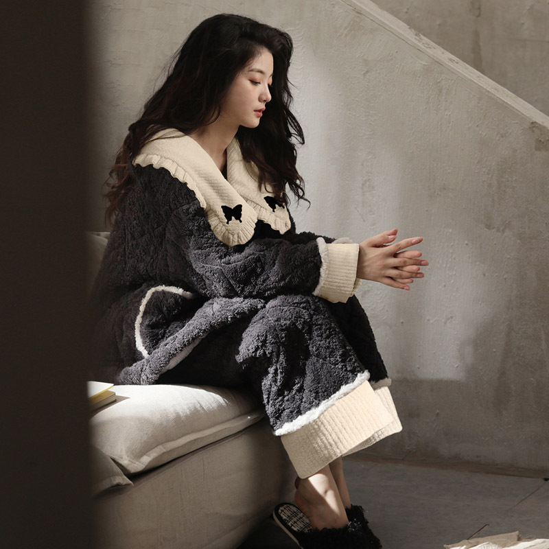 秋冬の韓系は暖かくて、暖かい部屋の服のコートを厚くして、ゆったりした部屋の服のパジャマを着ています。