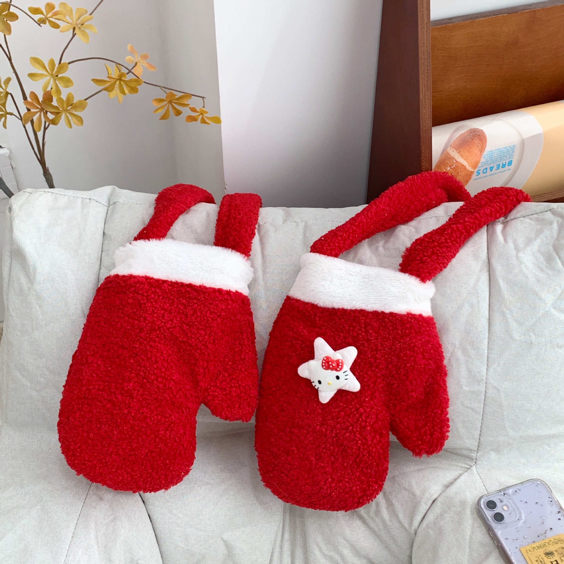 Kt猫帽子三点セットマフラー手袋冬ハローキティ耳カバー自転車保温女子毛茸学生