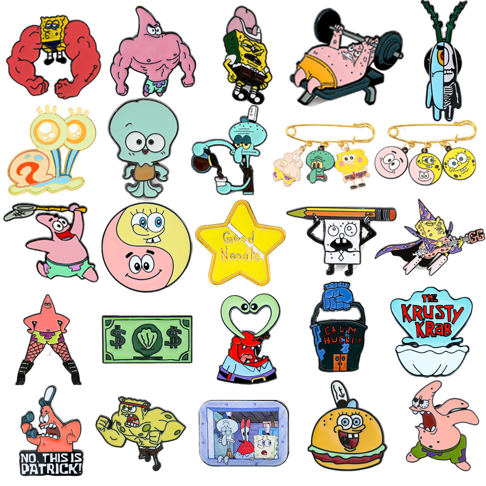 109款经典海绵宝宝金属徽章派大星蟹老板章鱼哥卡通合金胸针配饰