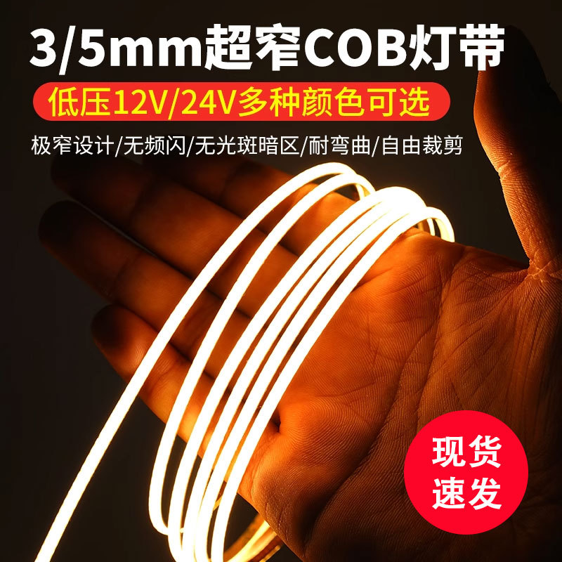 コブライトストリップ 3mm5mm 超薄型狭い 12V24V 低電圧自己粘着高輝度ちらつきのないホームセンター照明ストリップ雰囲気ライト