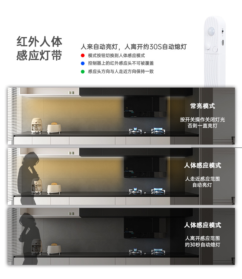 インテリジェント人体センサーライトベッドボトムセンサーライト配線不要寝室ナイトライトキャビネット装飾自己粘着ソフトライトストリップ