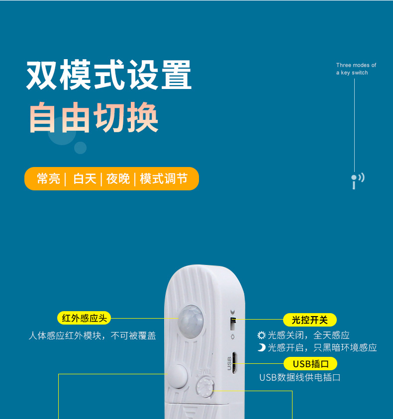 スマートLED人体誘導フレキシブルライトled電池付きUSB給電寝室ベッド底ベッドたんす誘導箱