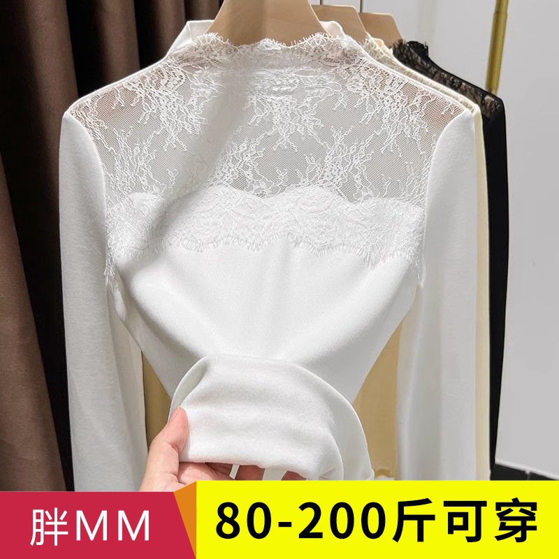 ベルベットの厚い毛磨きレースのシャツの女性2025秋冬の新しい半高襟レースのシャツの中に上着を着る