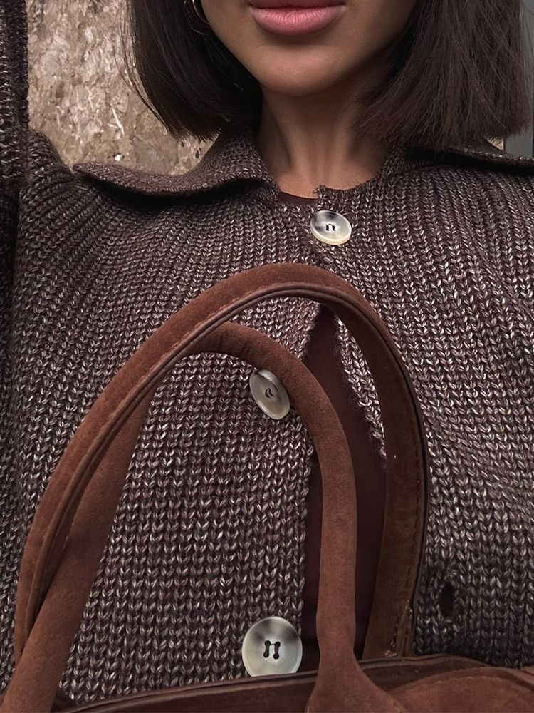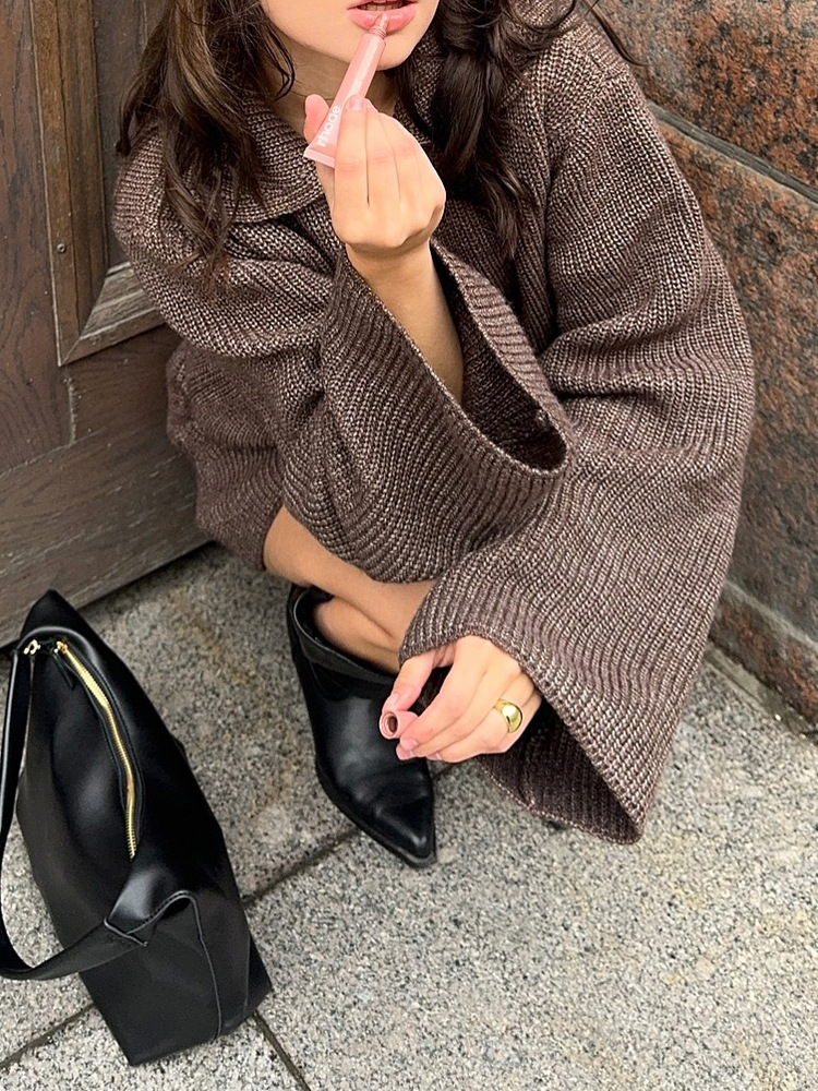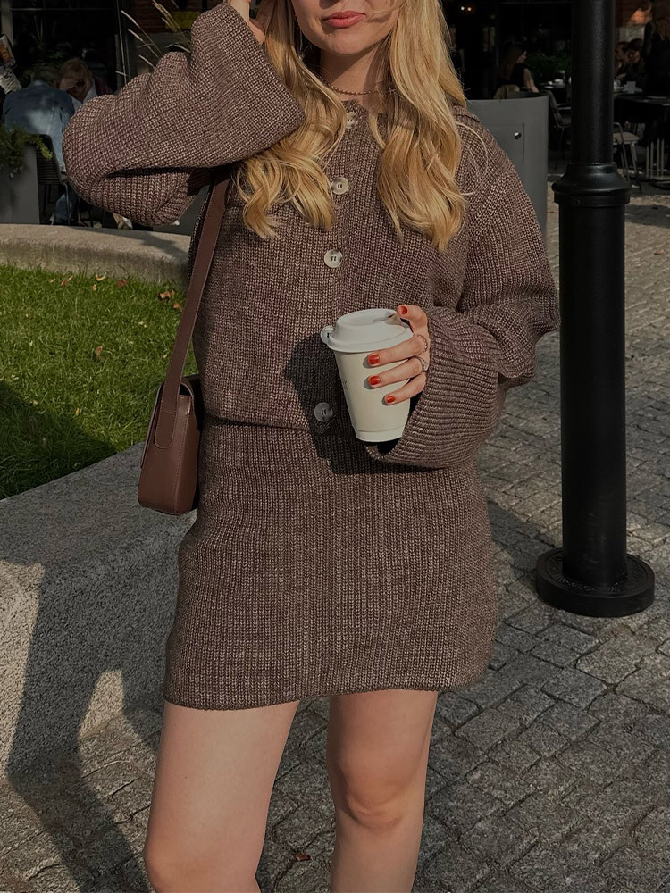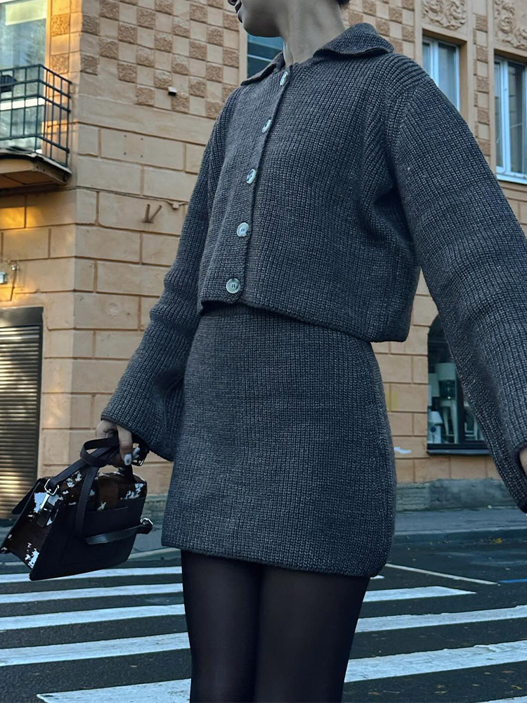 2024欧米の国境を越えた新しい襟付きラッパ袖カジュアルニットスーツのファッションカーディガンのスカート毛織セット