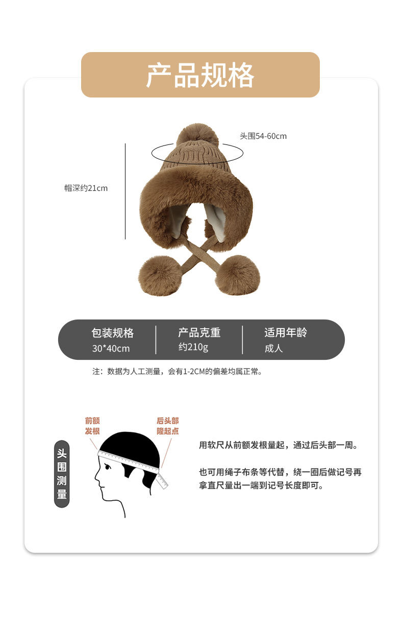 冬の厚手女性雷鋒帽防寒毛玉ニット帽毛糸ニット耳保護帽保温スキー帽