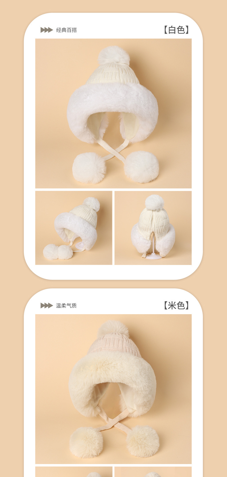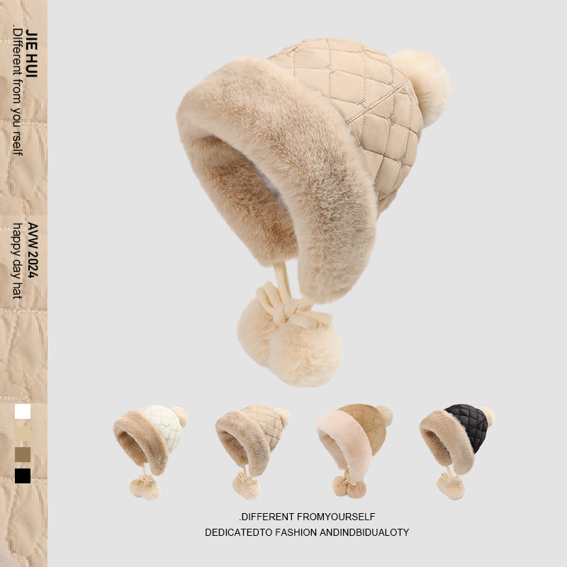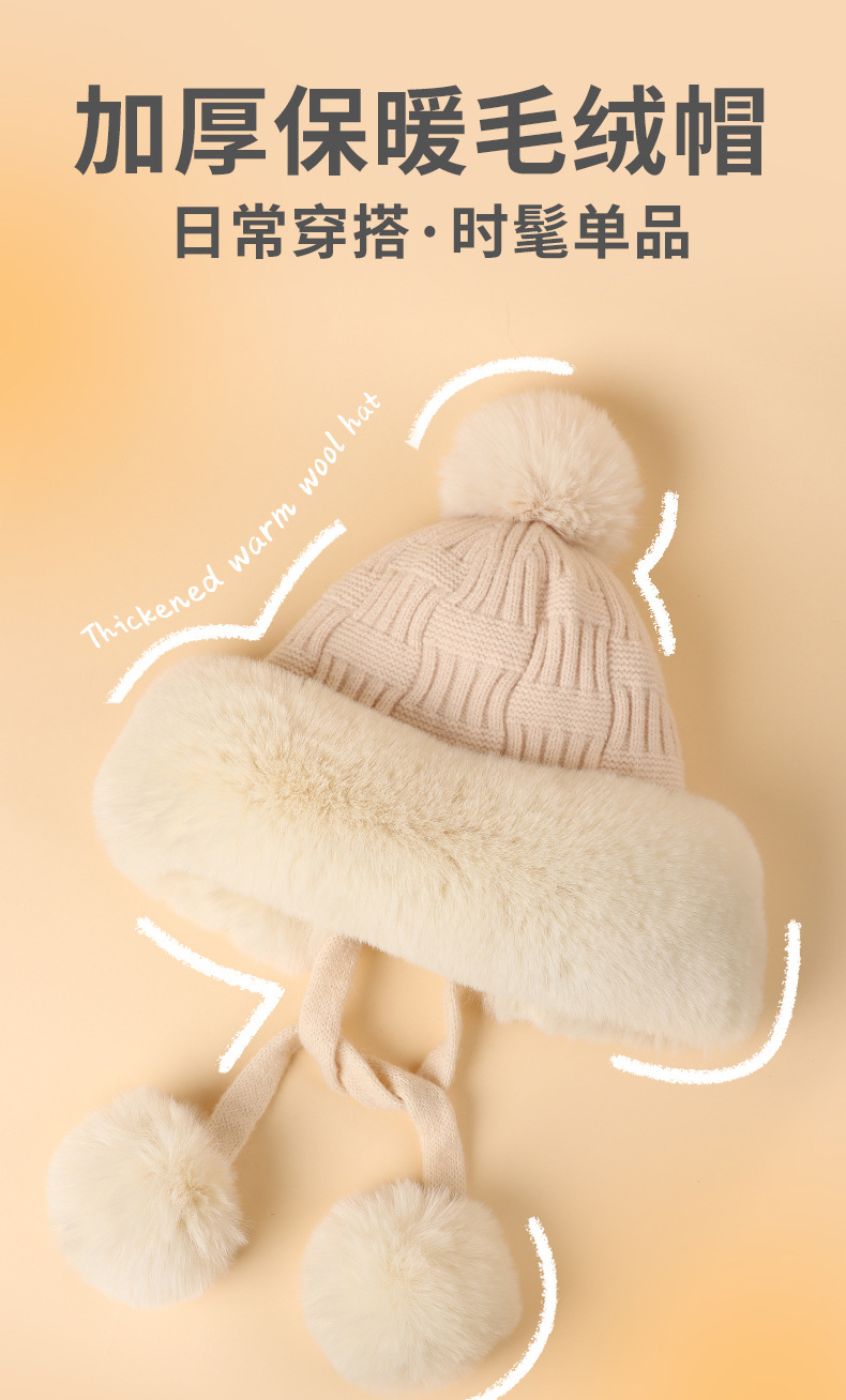 2025年新作 冬用裏起毛厚手防寒帽子 レディース 可愛いポンポン付きニット無地おしゃれ耳当て帽子