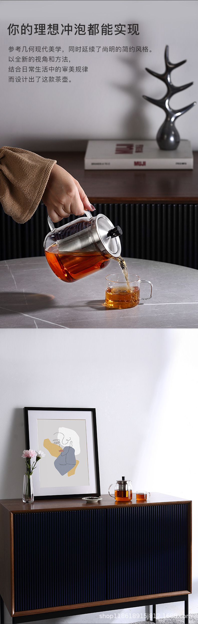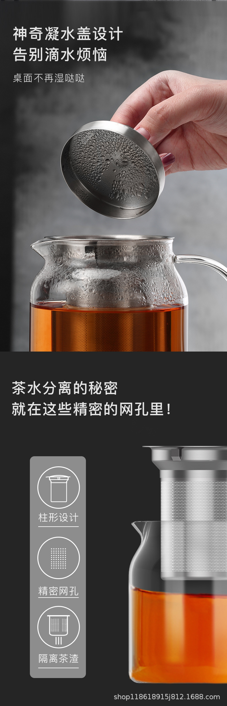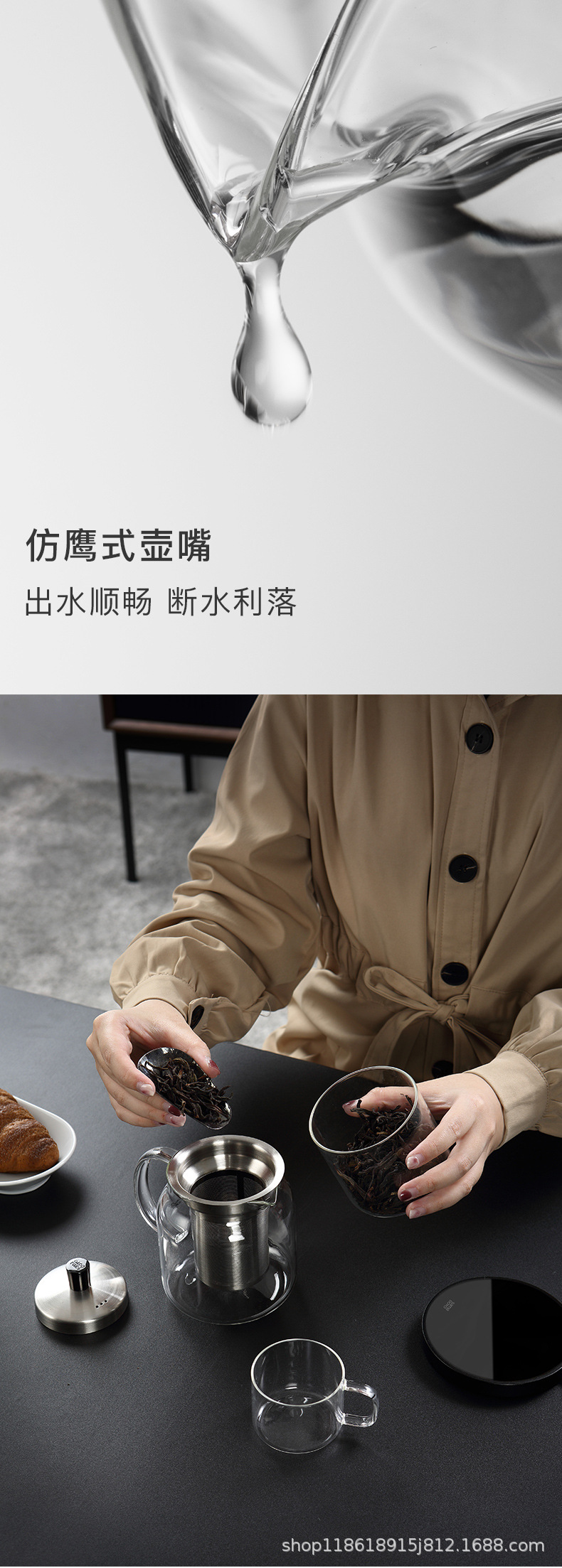 邦田家庭用全ガラスの中で、ティーポットの大容量のお茶を入れて、ワンキーのフィルターカップを分離します。