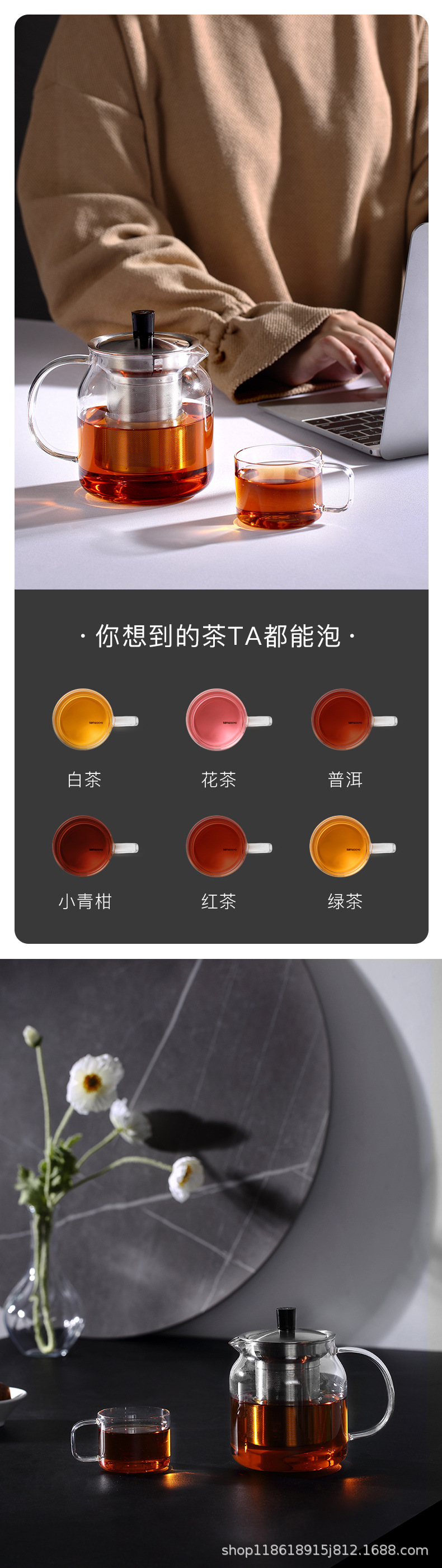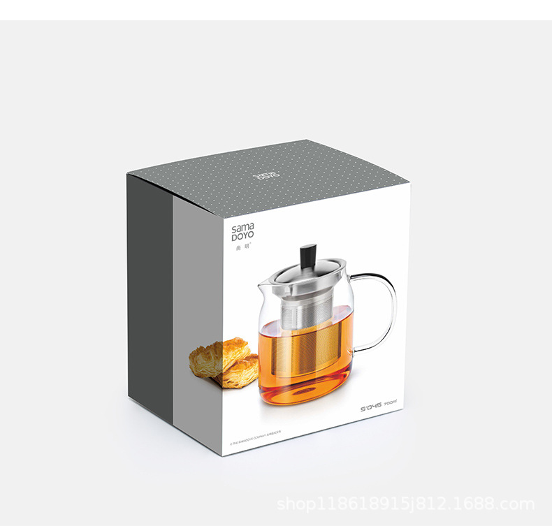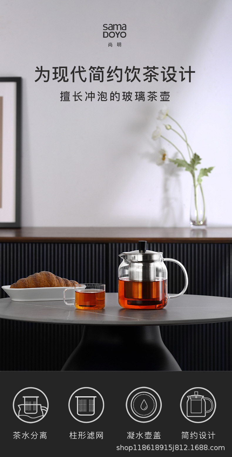 尚明ガラスティーポット耐高温泡ティーポットステンレス濾過茶器厚い耐熱ガラス花ティーポット