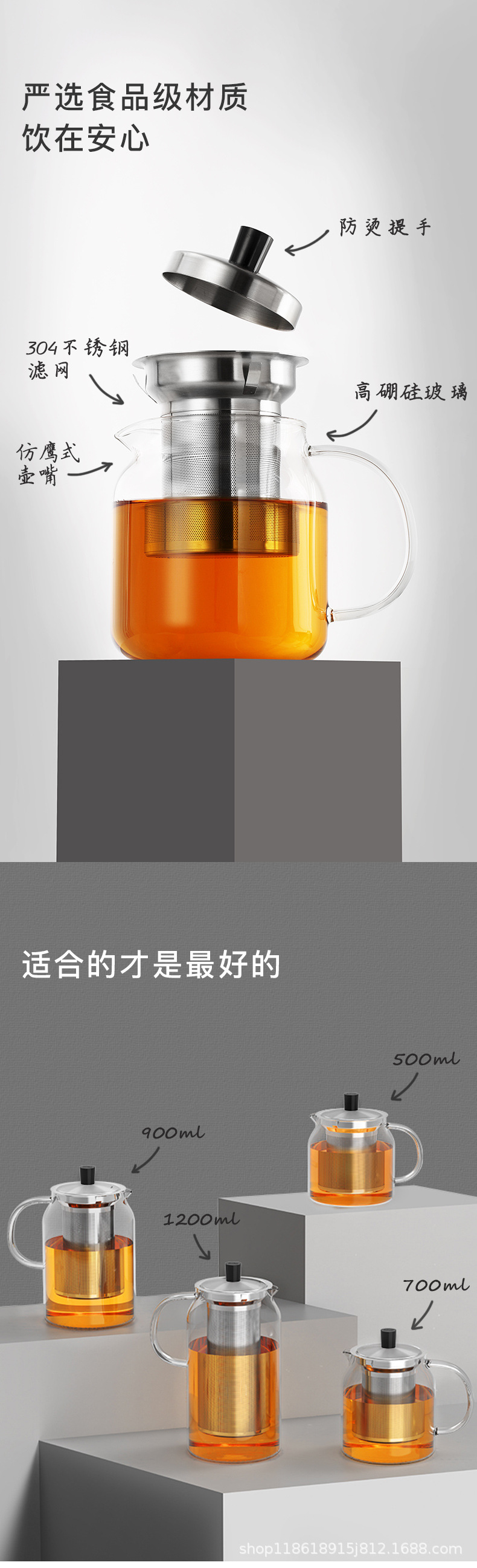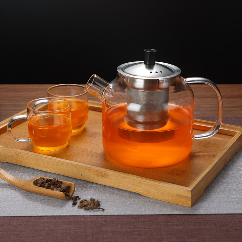 卸売りサイズ容量ガラスティーポット高ホウ素シリコンガラス花茶ティーポットステンレスフィルター