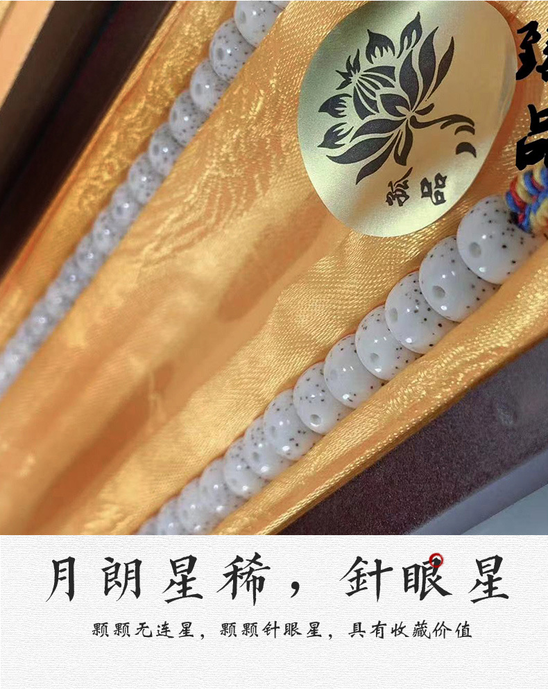 海南星月菩提円珠手串108個の大きな白い針の穴の星の高磁器の高い文は数珠のブレスレットを遊びます。