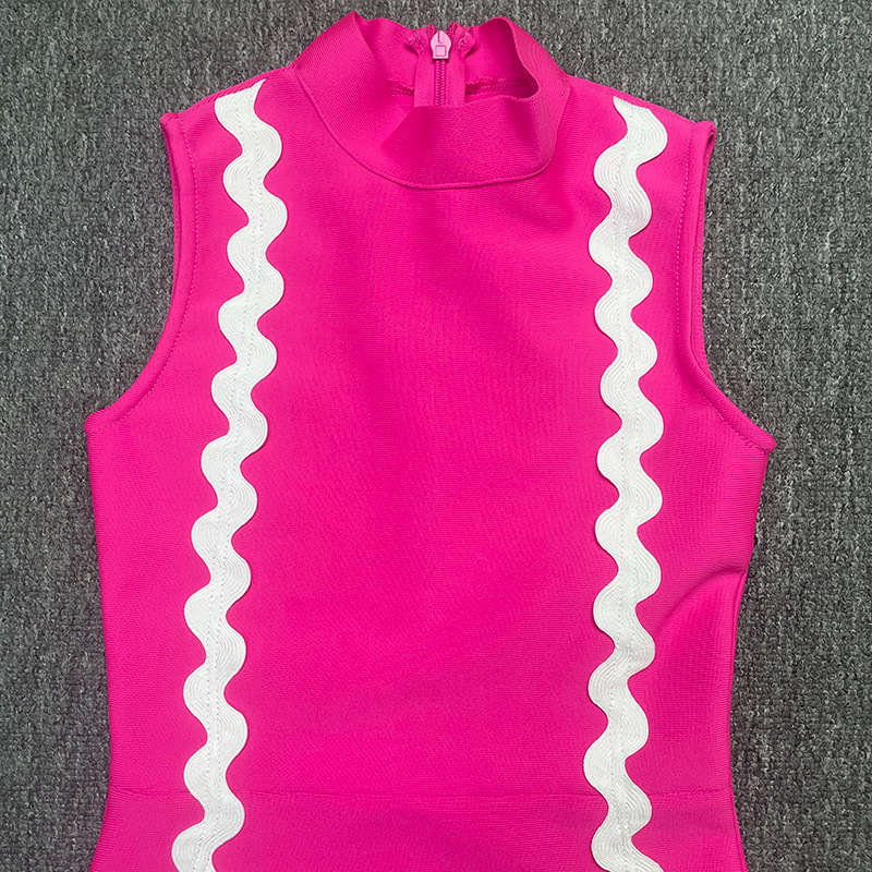 欧米のクロスボーダーの新型婦人服の丸首の袖なしの色のストライプの気質の優雅な名媛風の包帯のワンピースのドレス
