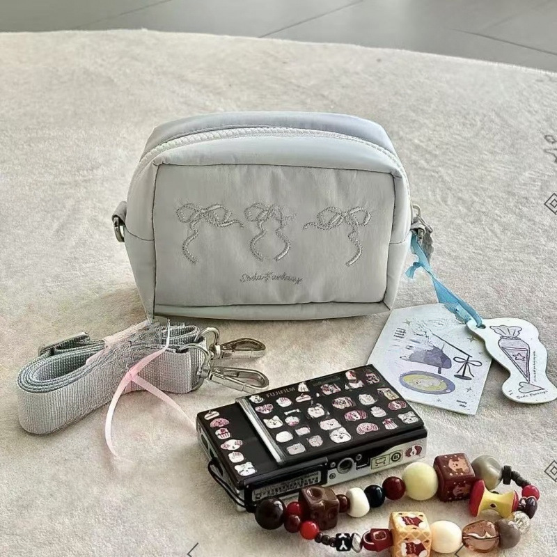 韩系简约CCD相机包日式刺绣蝴蝶化妆包收纳包彩妆包收纳杂物包男