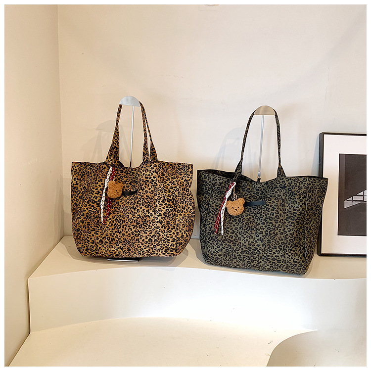 2024秋冬新作韓国系レトロ大容量豹紋キャンバスバッグ通勤女性バッグ