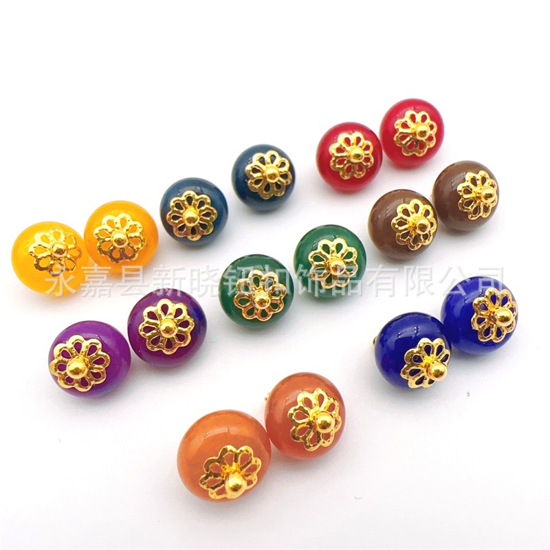 ソースメーカーのカラフルな樹脂と金属の組み合わせビーズボタンレトロ中国風チャイナドレス漢服唐スーツベストボタン
