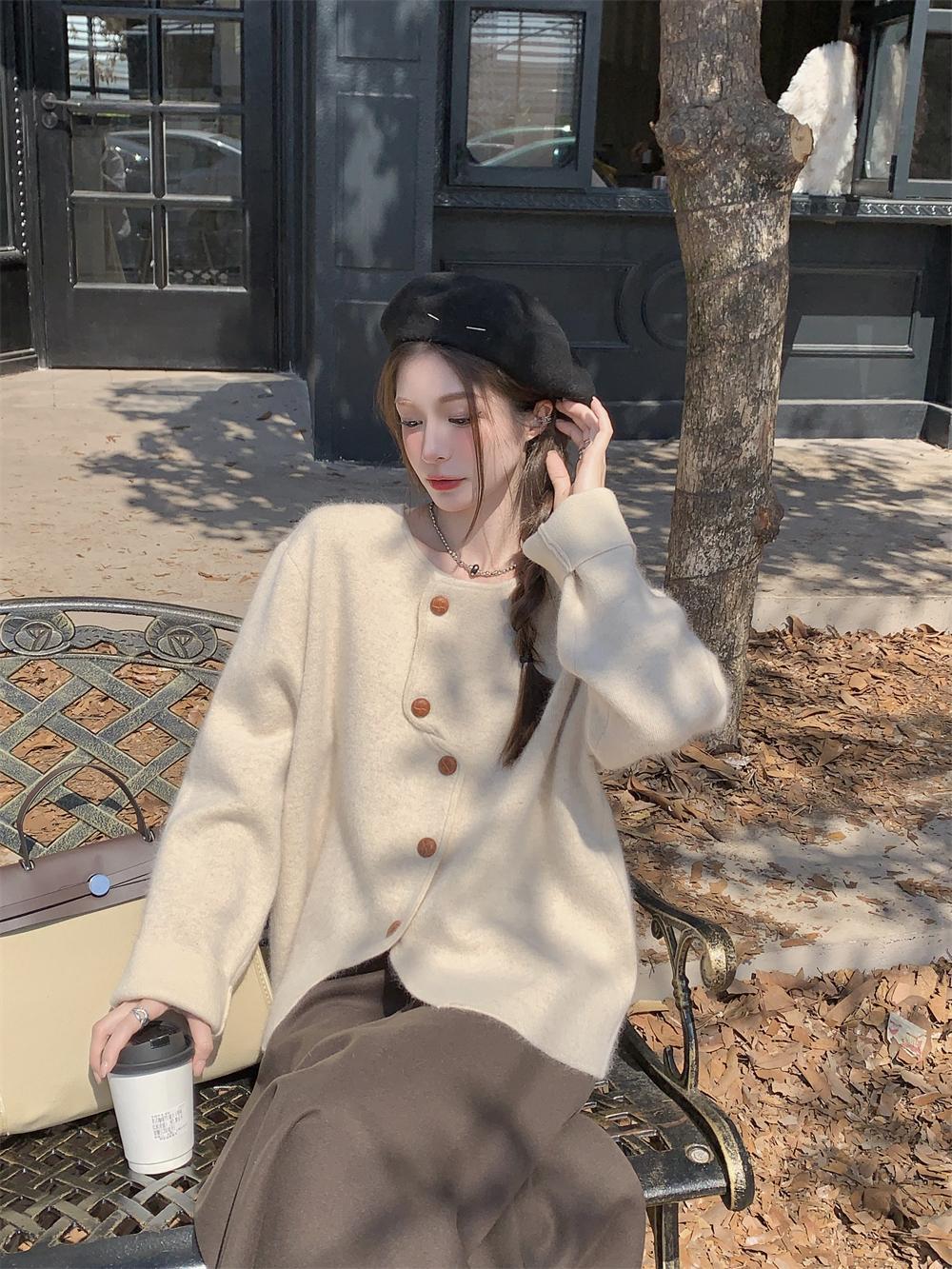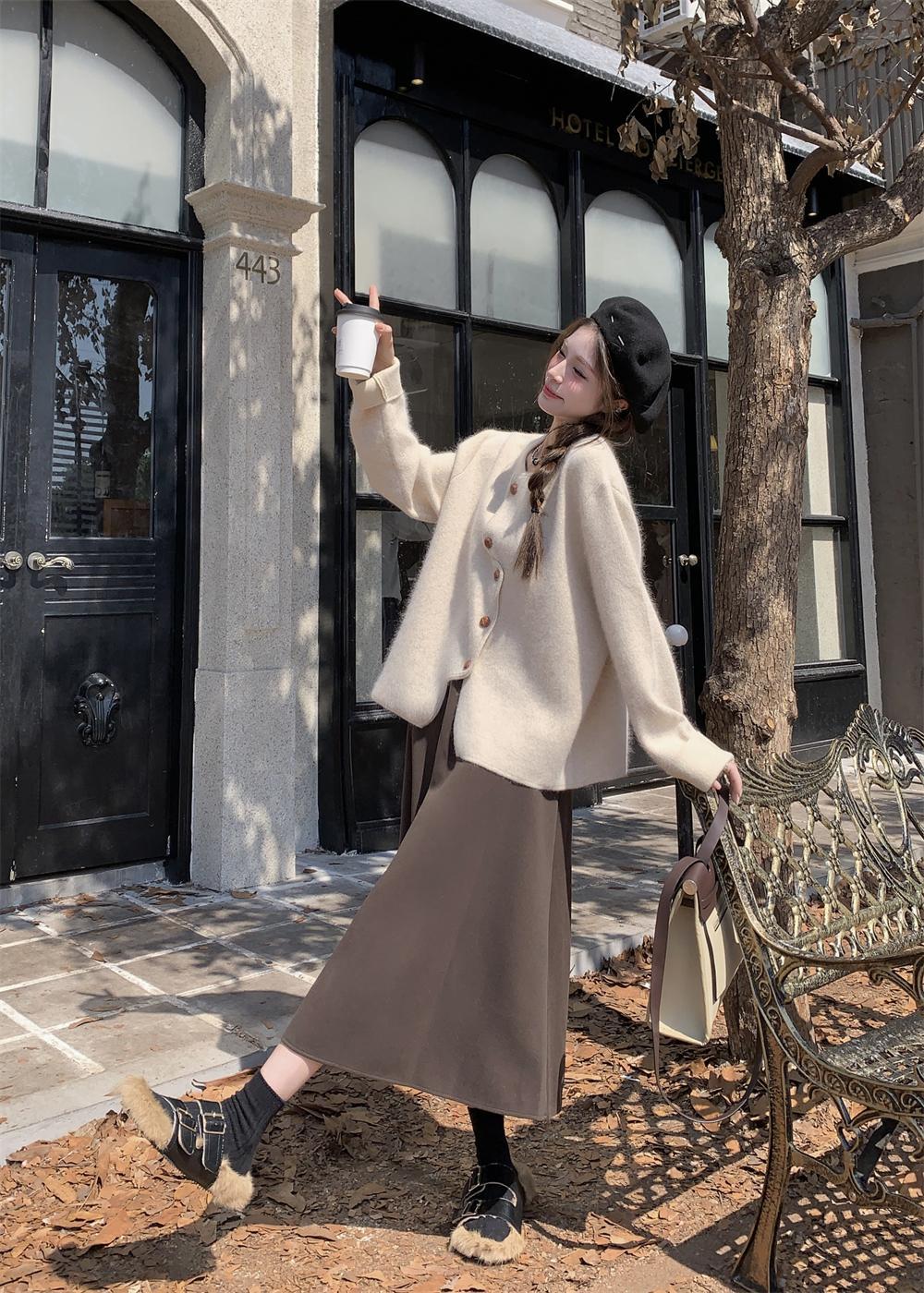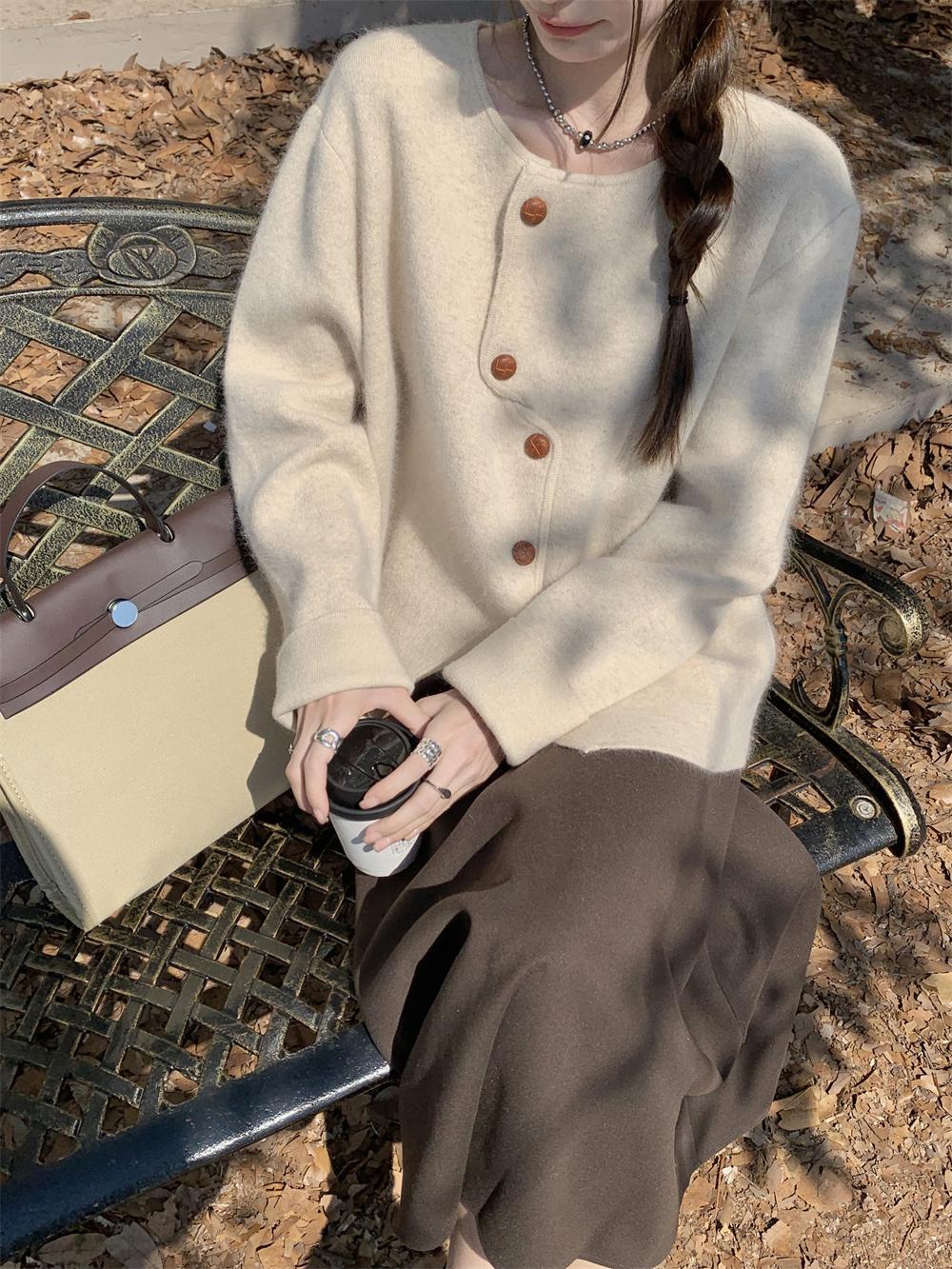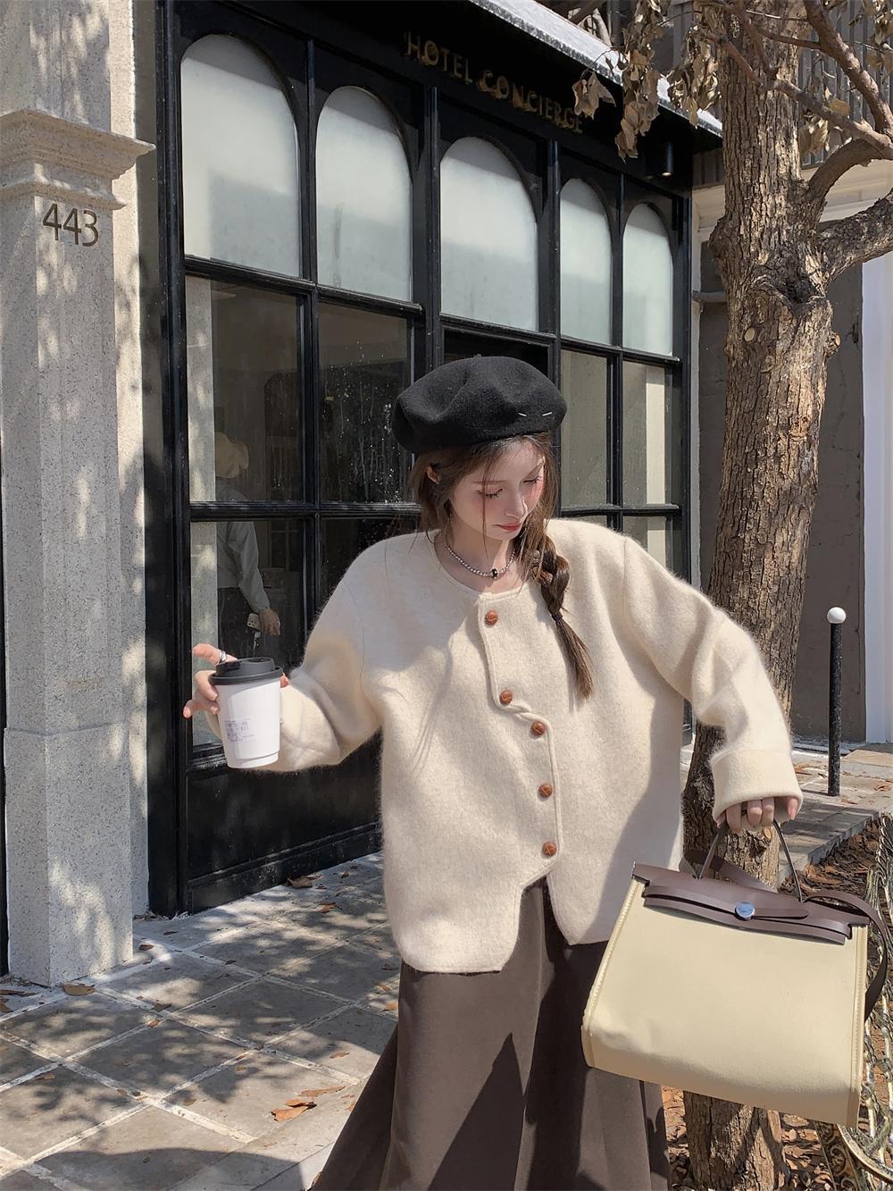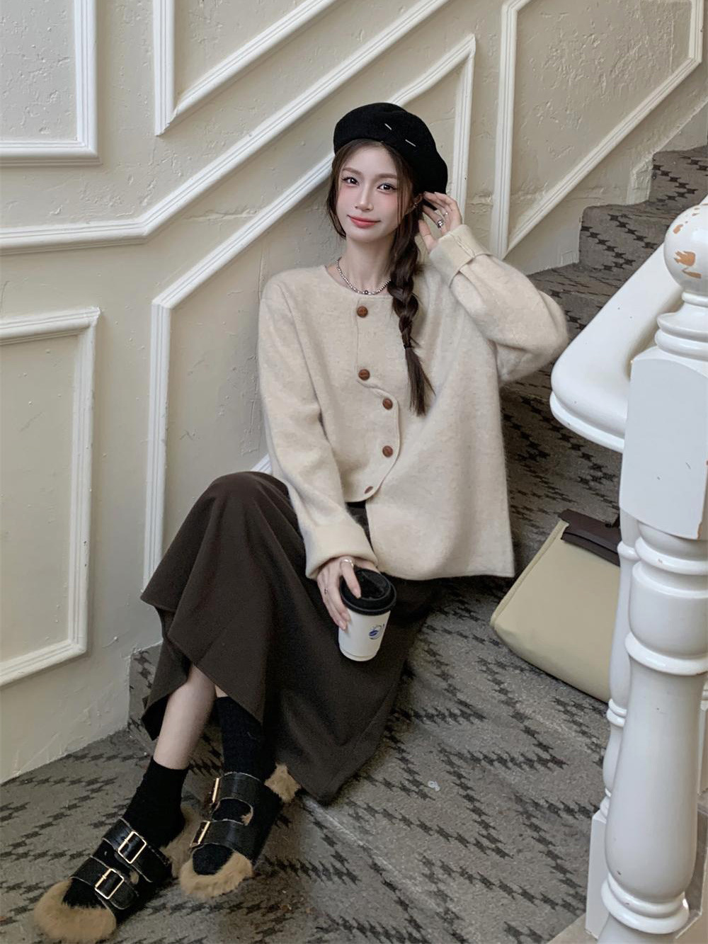 高級感気質減齢シャツコート半身スカートセット女性2025秋冬怠惰ゆったり三点セット