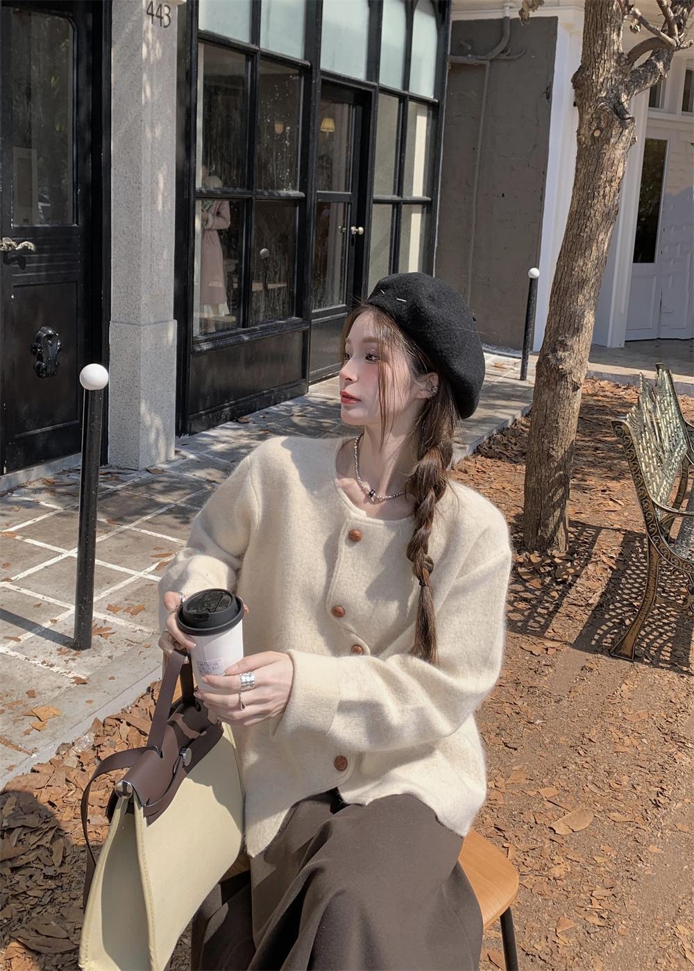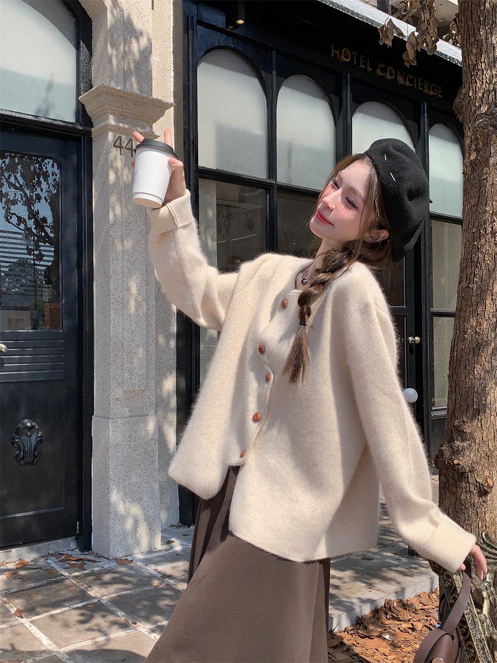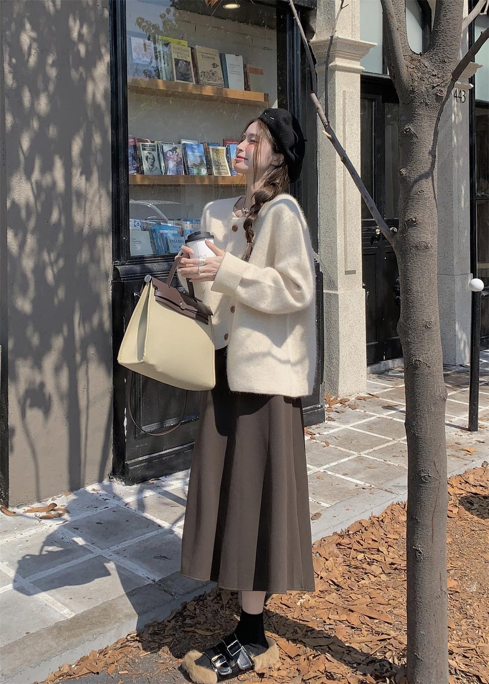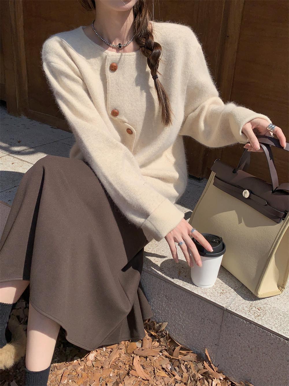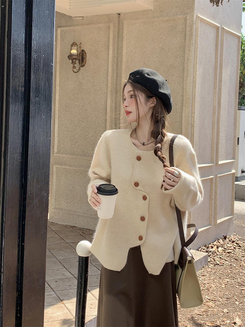 高級感気質減齢シャツコート半身スカートセット女性2025秋冬怠惰ゆったり三点セット