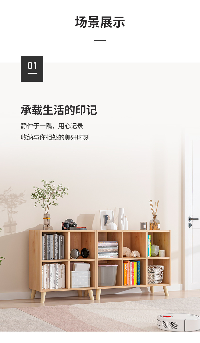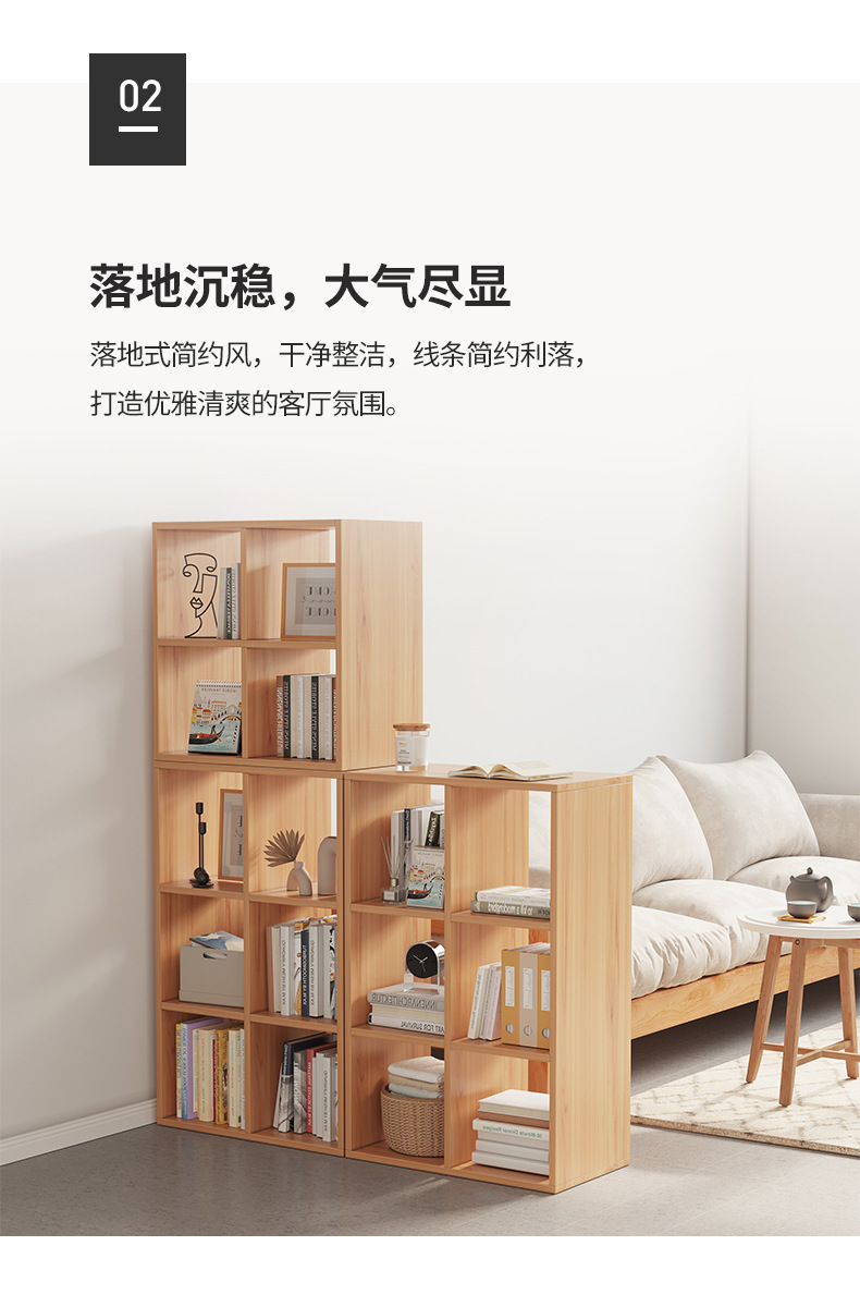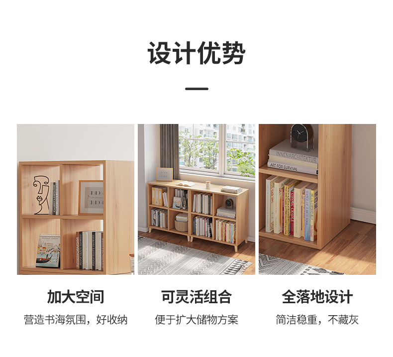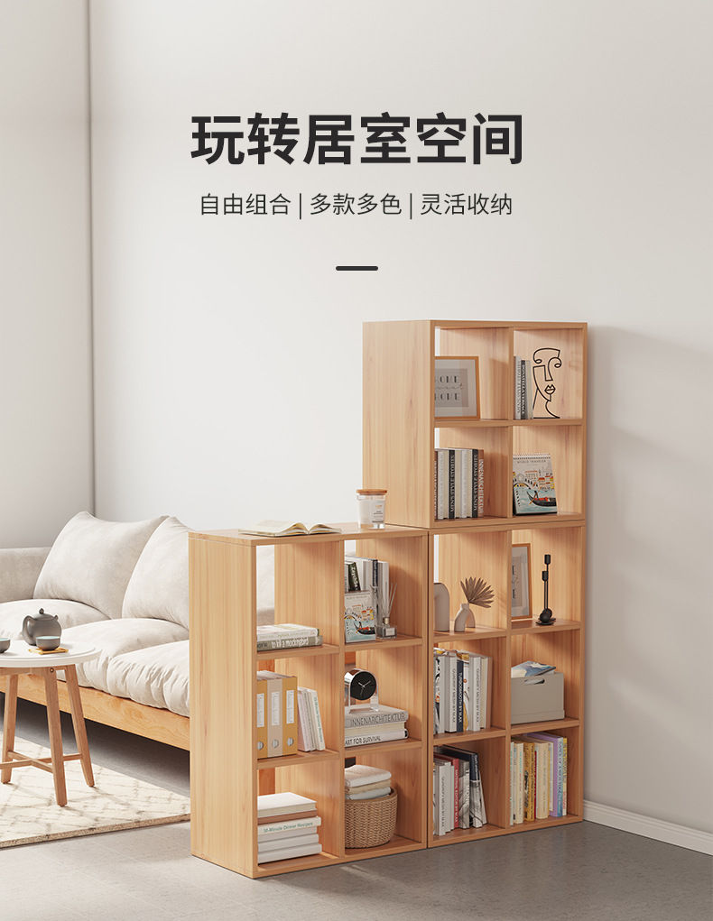 本棚の実木色自由組み合わせ収納棚床置き壁多層展示棚リビング家庭用高本棚
