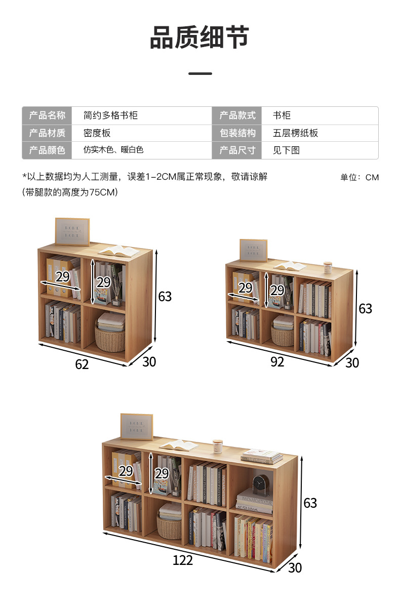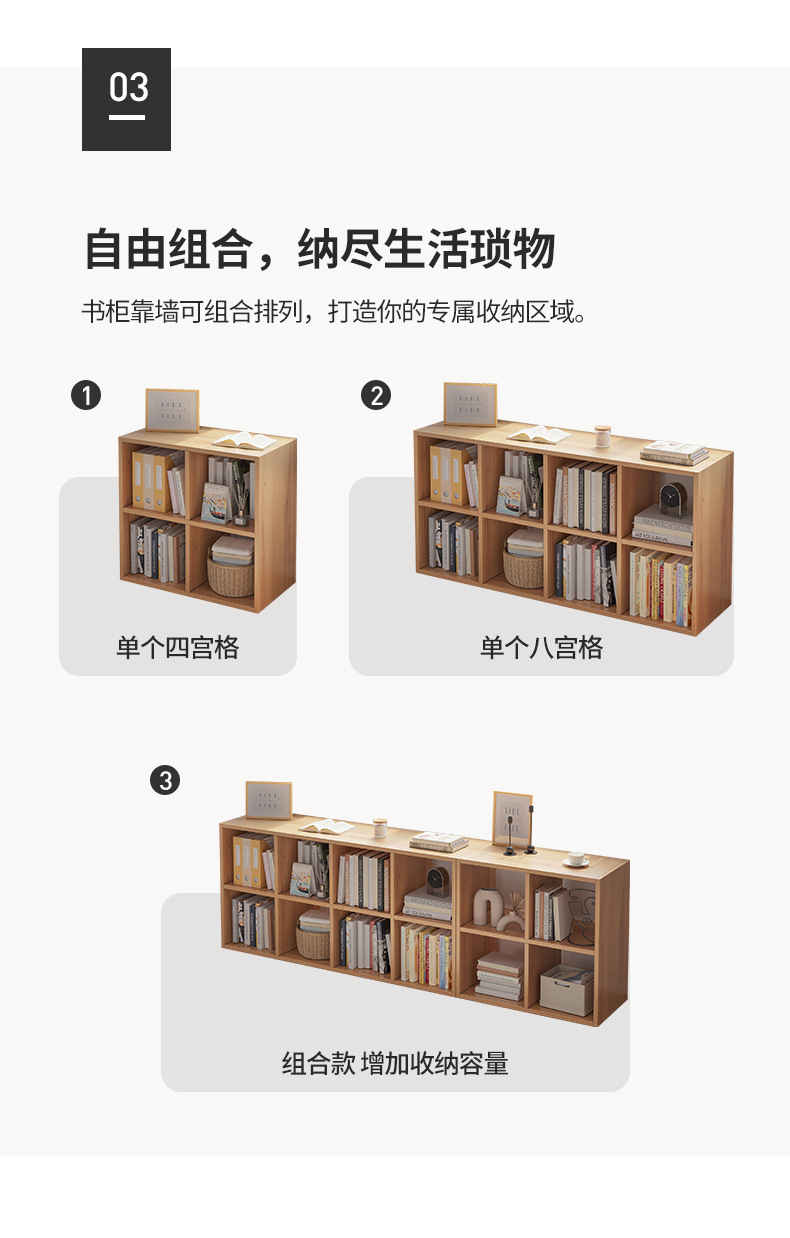 全実木本棚松木児童収納棚本棚家庭用棚床置き壁自由組み合わせ格子キャビネット