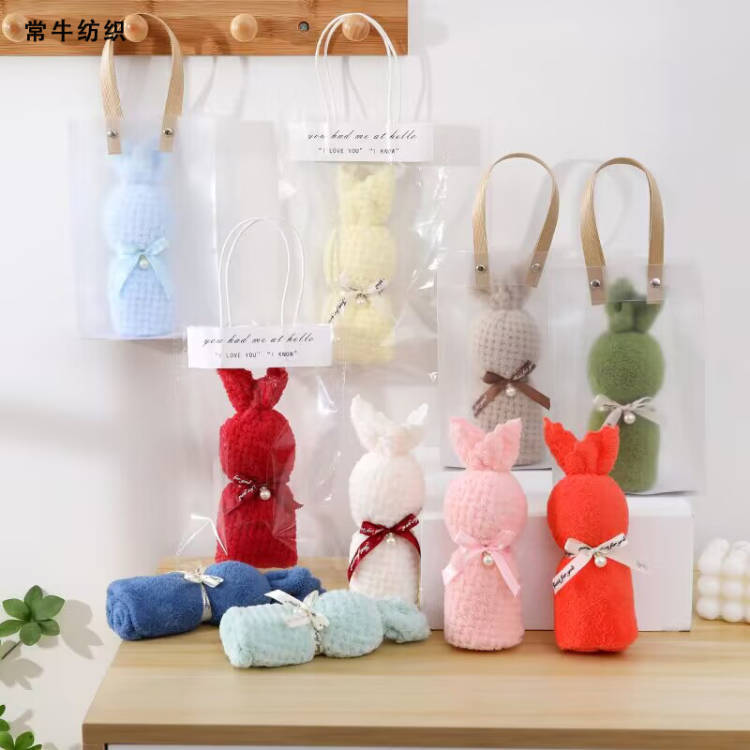 コーラルベルベットのお土産、ウサギの形のタオル、結婚式の誕生日プレゼント、結婚式のお返し、幼稚園のオープニングのアイデア