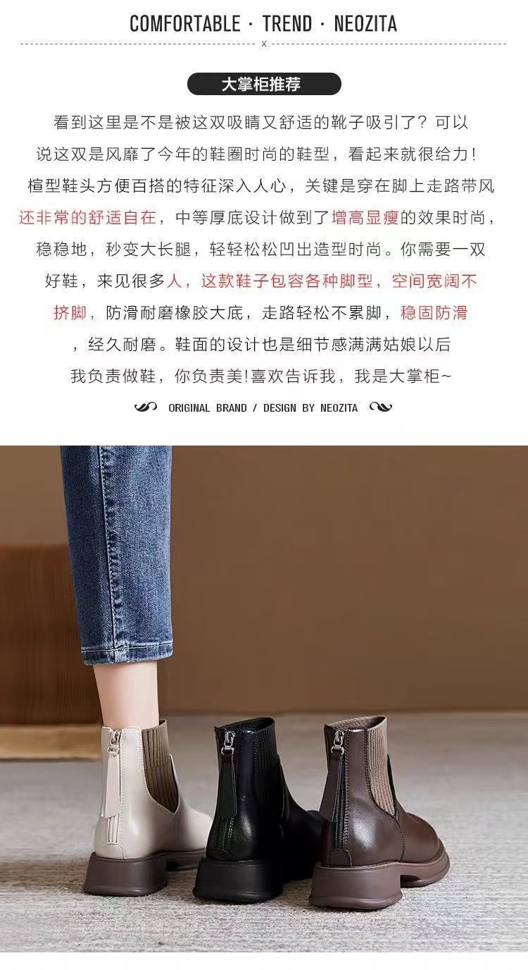 2024秋冬新作マーティン女性靴英倫ファッション痩せブーツファスナー春秋ショートブーツ女性ソフトレザー