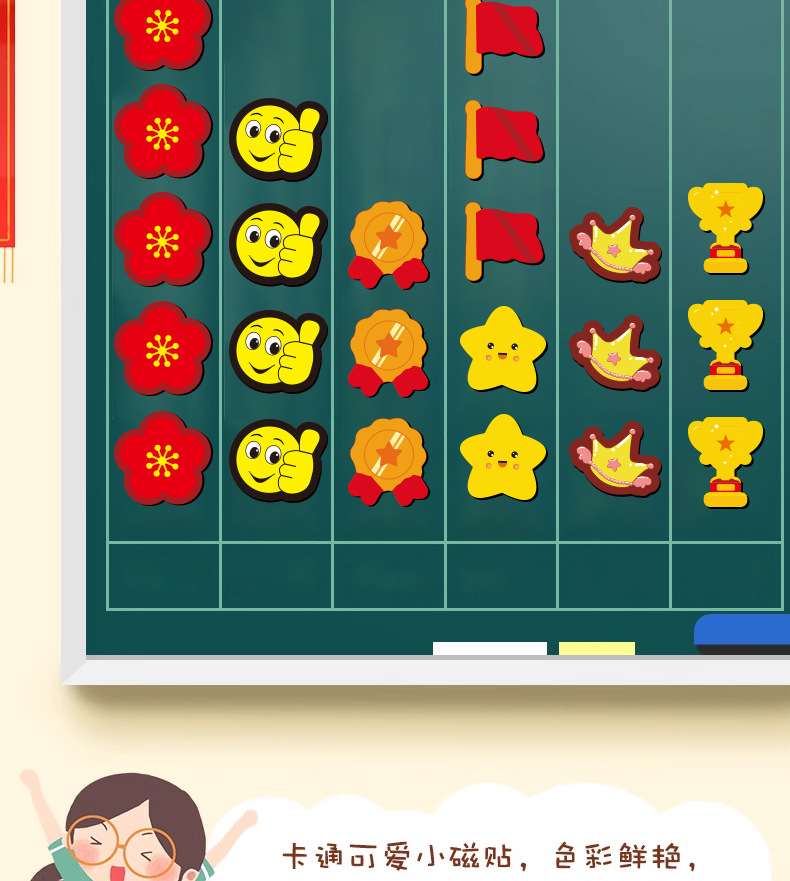儿童卡通奖励磁贴磁铁磁力贴片磁吸冰箱贴小组积分评比黑板贴
