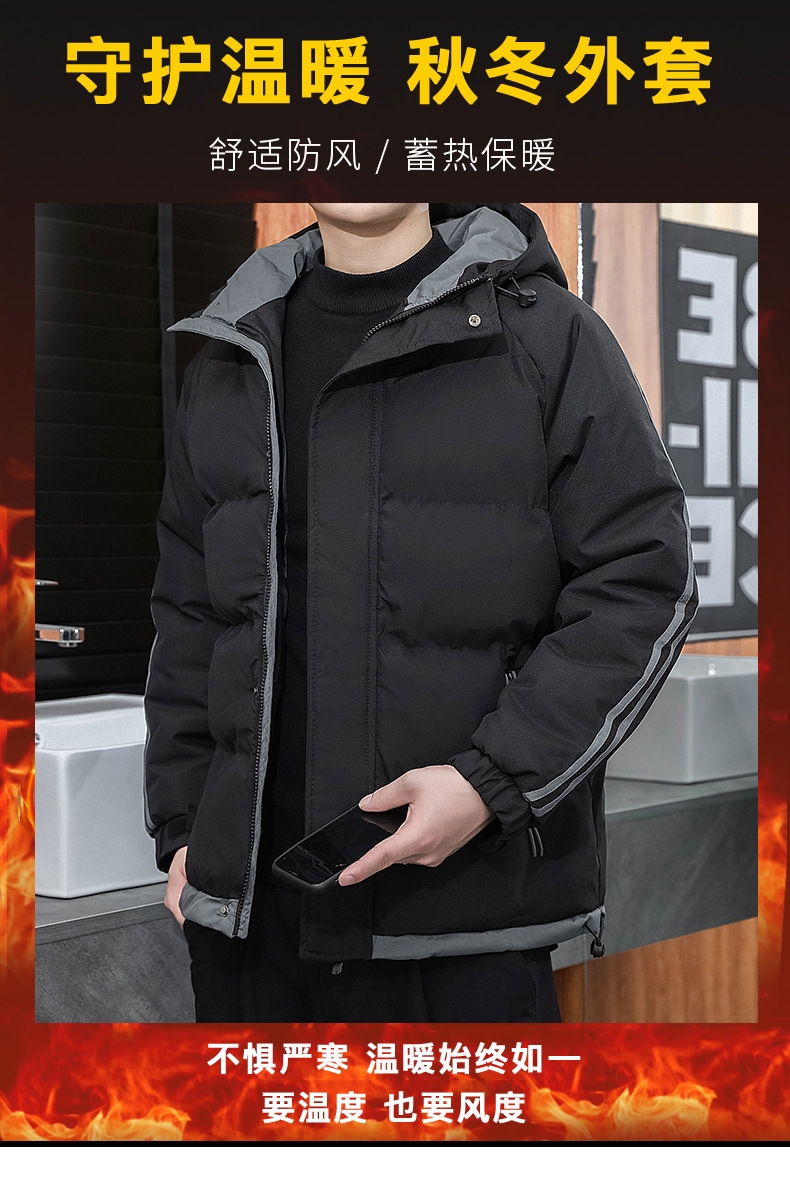 2024新型秋冬男性綿服カジュアルダウン綿服男性厚手綿入れのパンティーフード付き男性ジャケット