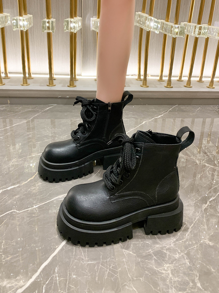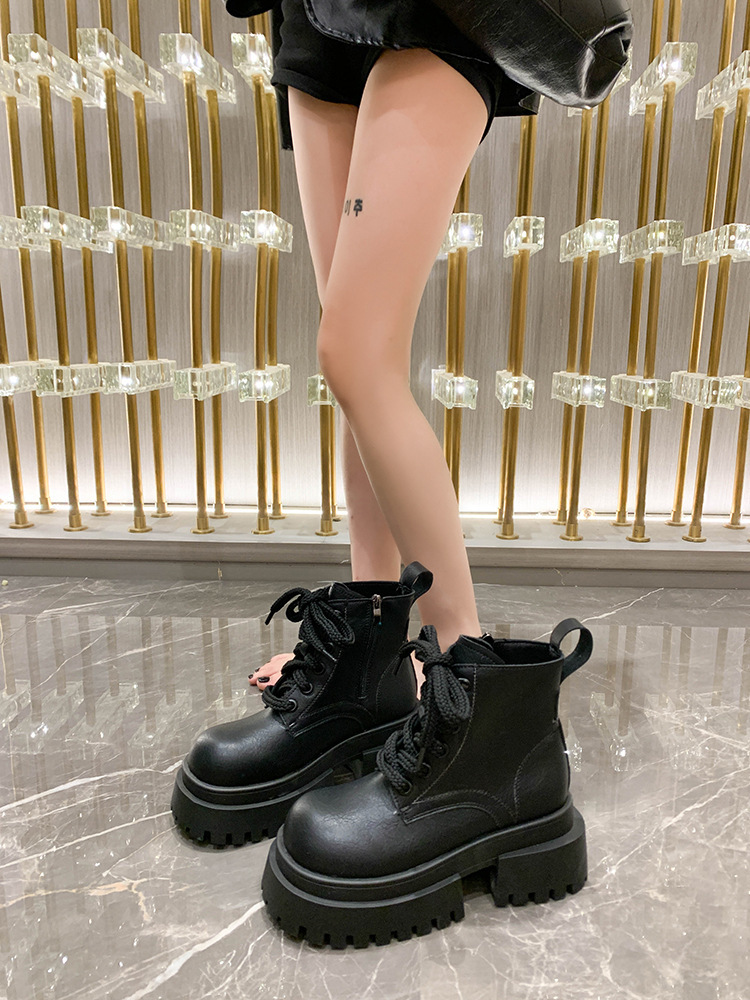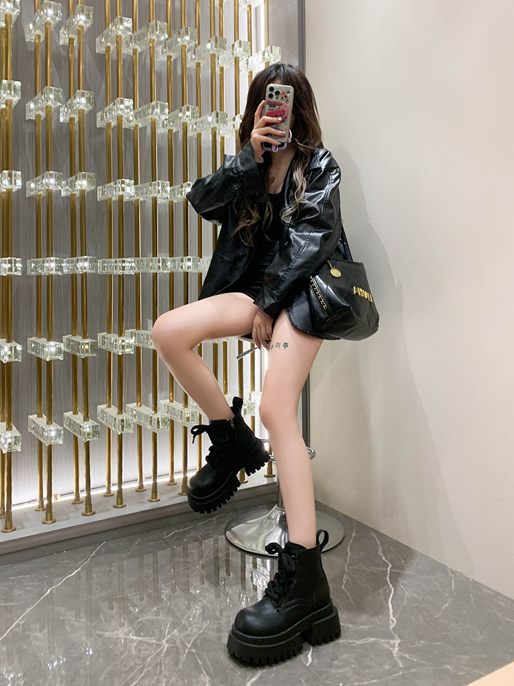 ショートブーツの女性のマーティンブーツは2024年の冬の新型の小さい子の厚い底の秋冬のベルベットの英倫の扇風機の靴の薄いタイプです。