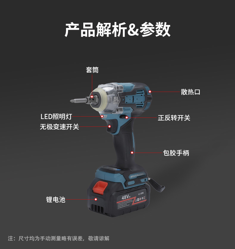 源头厂家锂电无刷电动扳手木工用扳手充电家用高效大功率批发