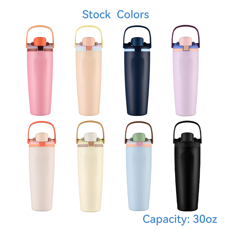 跨境新品30oz手提保温杯便携双饮弹跳保温杯户外吸管运动水杯批发