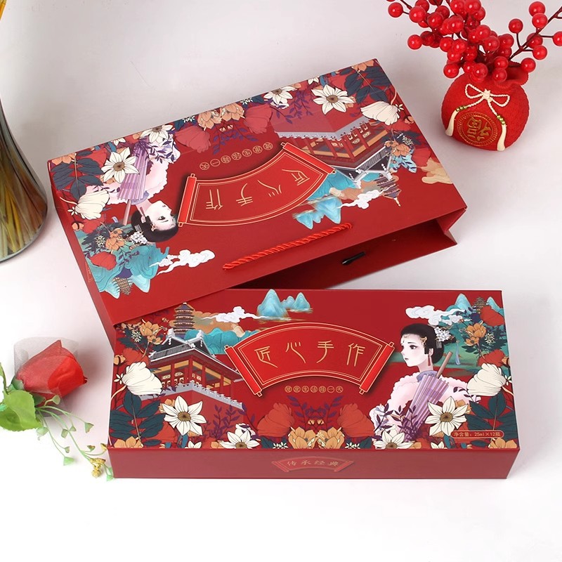 2025起爆金蛇年クリエイティブギフトバッグおせち紙袋大赤色お土産手提げ袋砂糖ケース