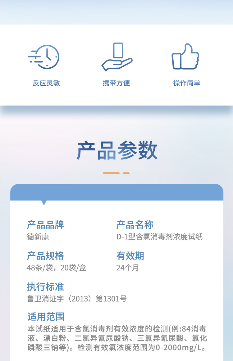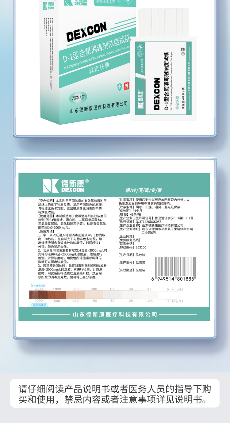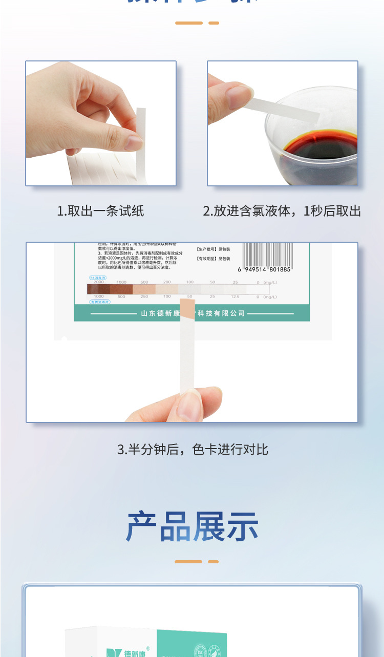徳新康D-1型塩素系消毒剤濃度測定紙指示カード84消毒液濃度配合測定紙