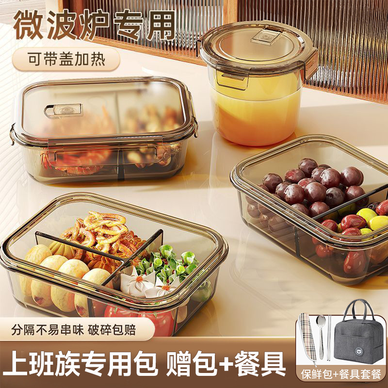 会社員向け弁当箱、鮮度保持ボックス、ボウル仕切り付き弁当箱、電子レンジ加熱対応高硼珪酸ガラス弁当箱