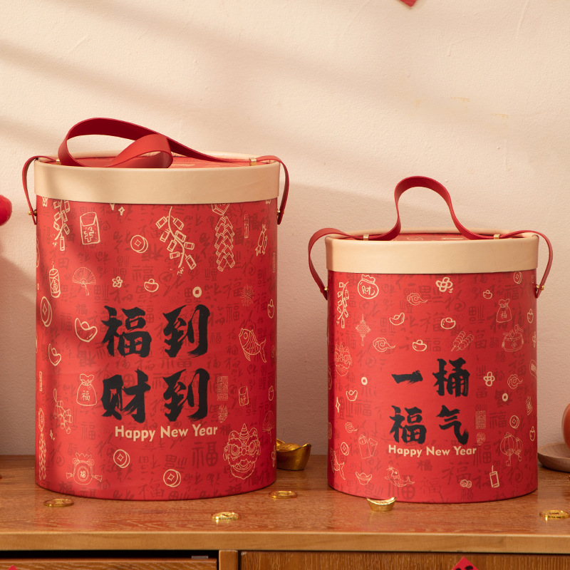 2026新年礼盒创意圆桶手提盒大容量春节年货包装盒空盒过年盒子