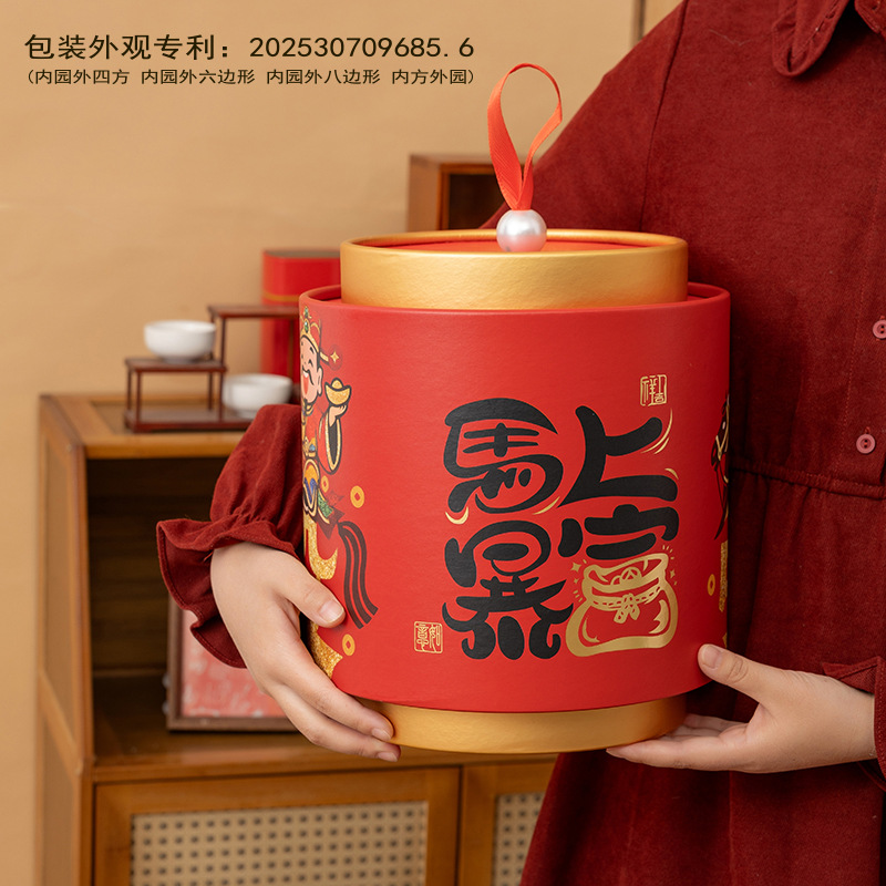 2026年货礼盒灯笼新年包装抱抱桶坚果零食糕点圆筒礼盒纸罐包装