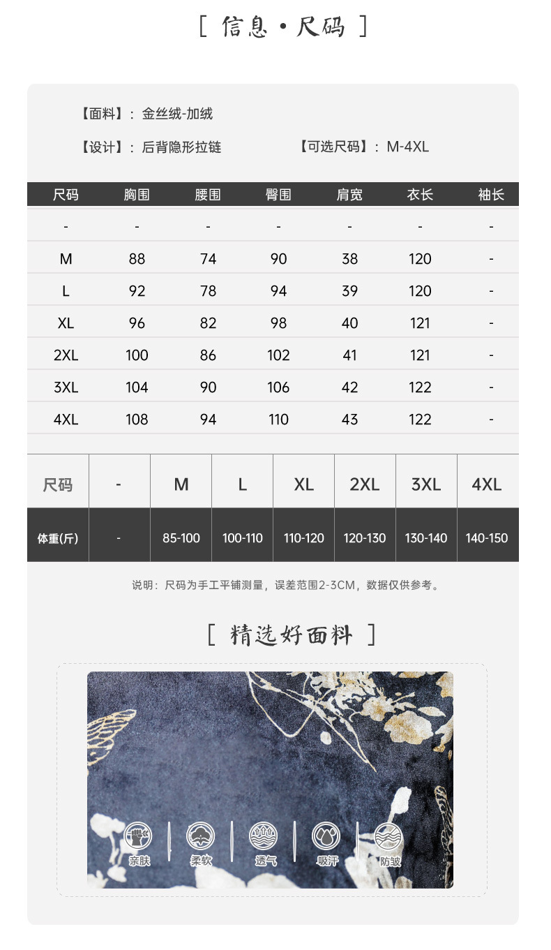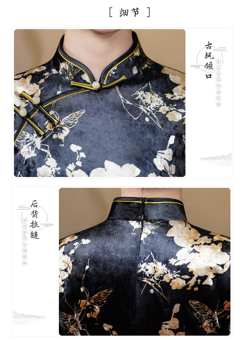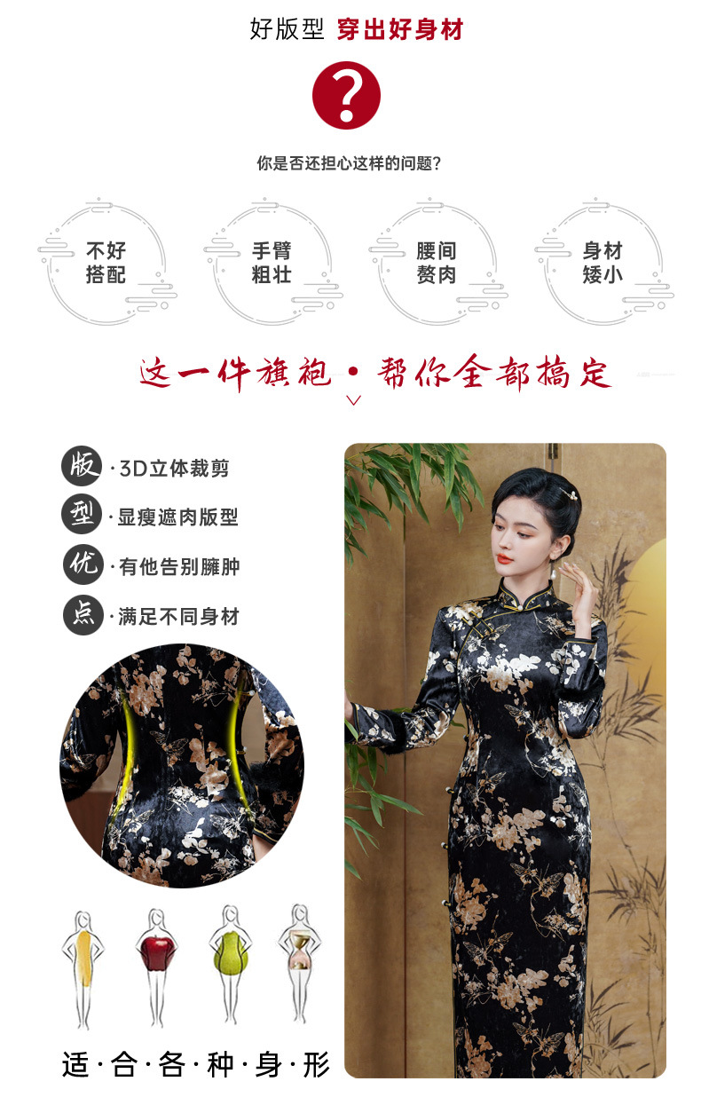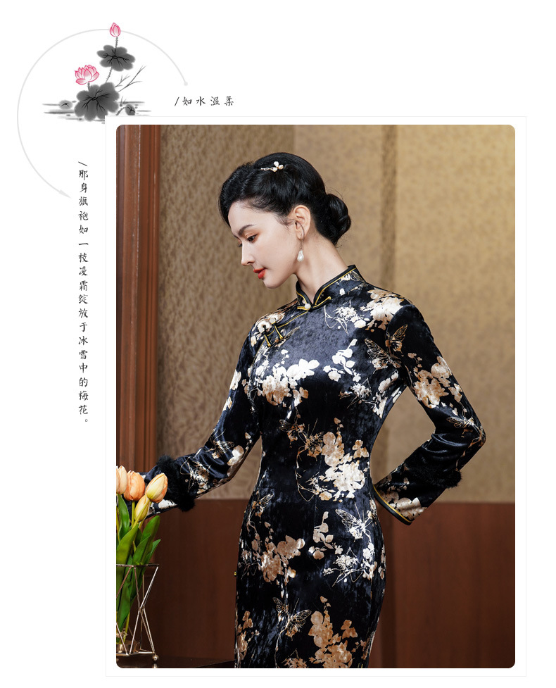 2024年秋冬の新型ベルベットは長袖のチャイナドレスのロングスタイルの気質を厚くした中年の母親のレトロで優雅な高級