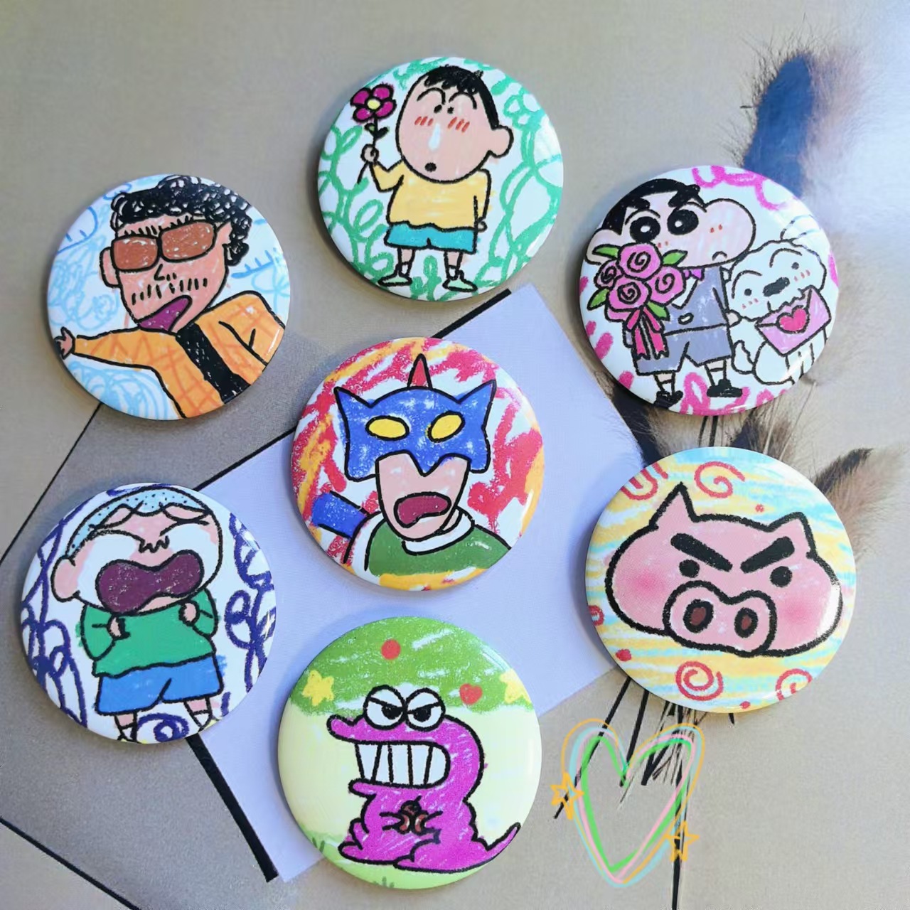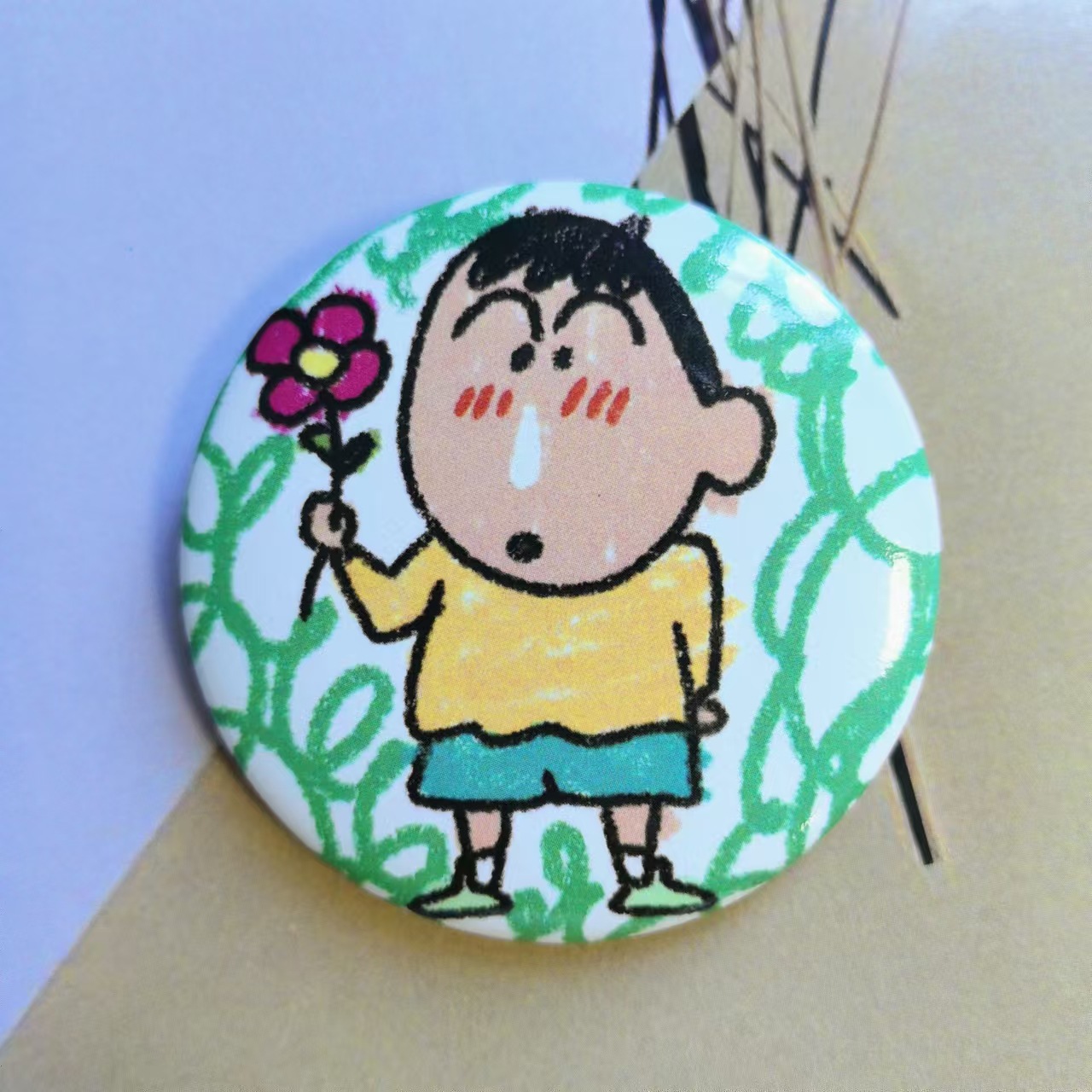 クレヨンしんちゃんバッジ白ブローチバーブリキ高颜値ストラップ学生の親友プレゼント装飾58mm