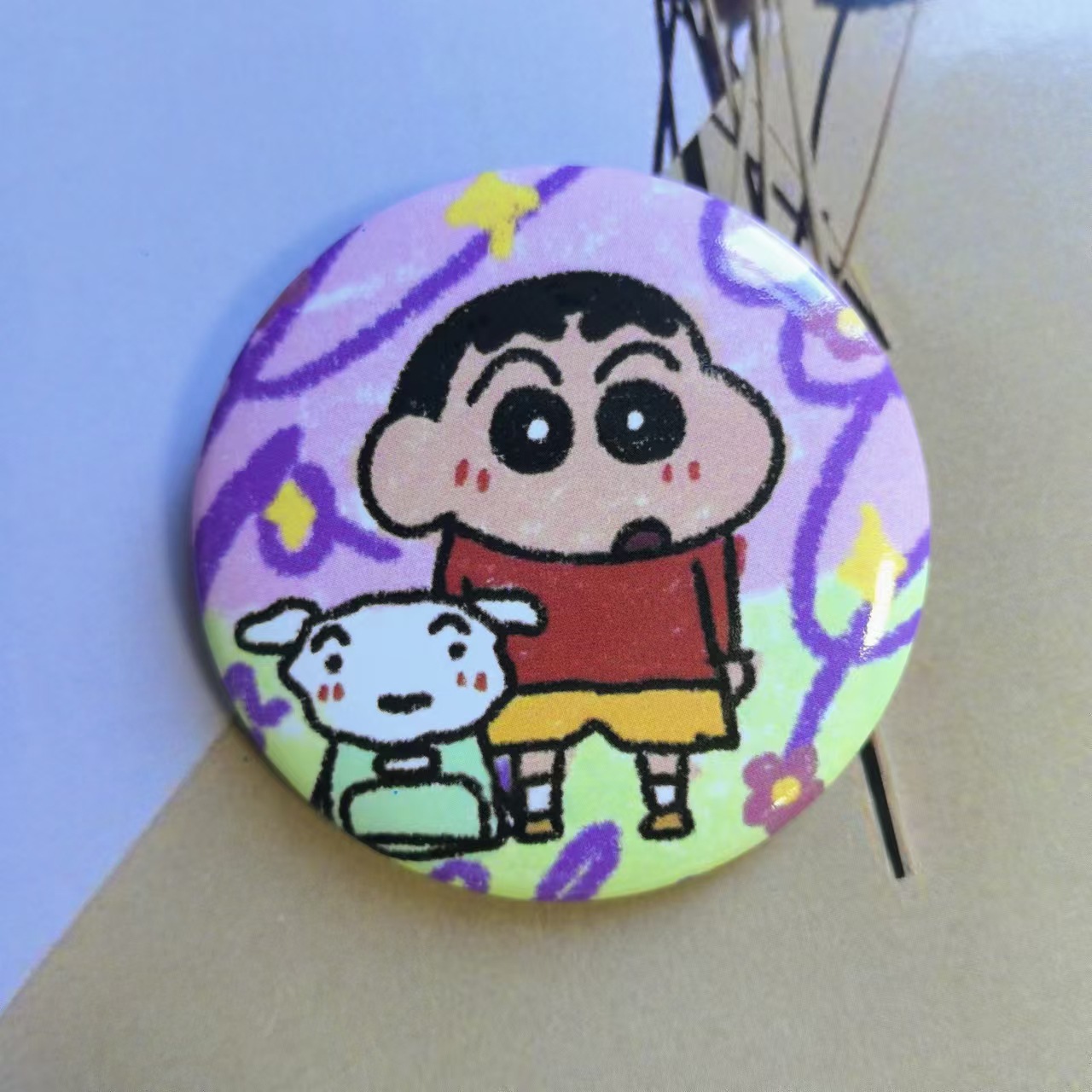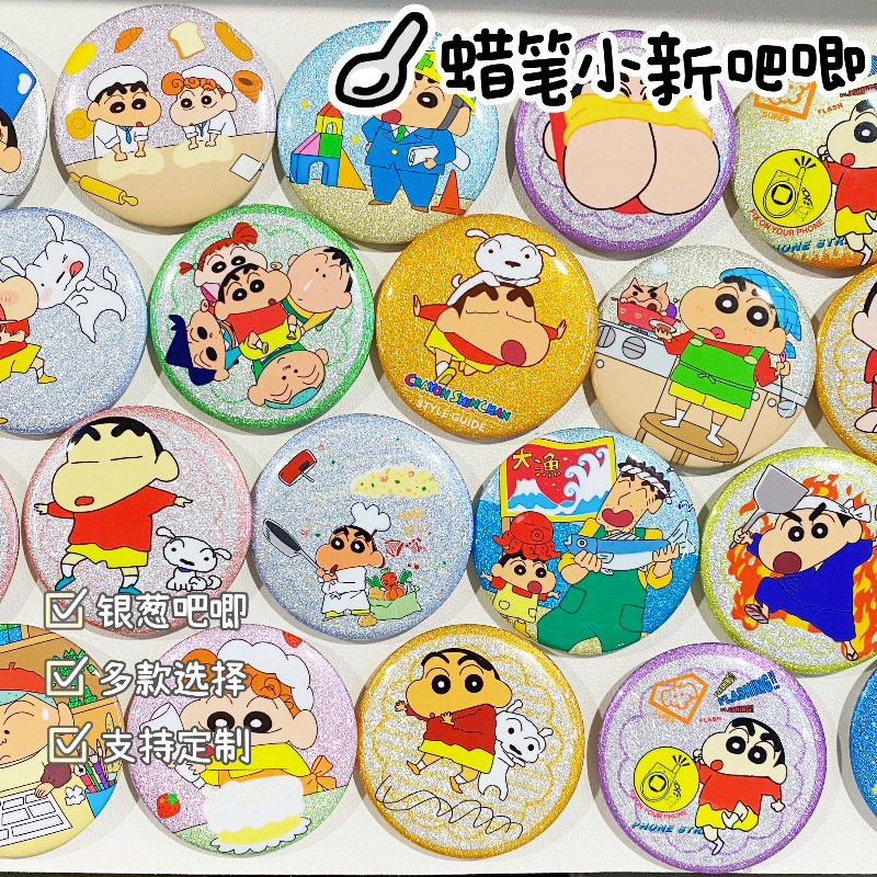 ガラスが割れる!クレヨンしんちゃんアニメバッジ、ブリキ製ピンバッジ、学生用アクセサリー、クリエイティブな漫画ピンバッジ