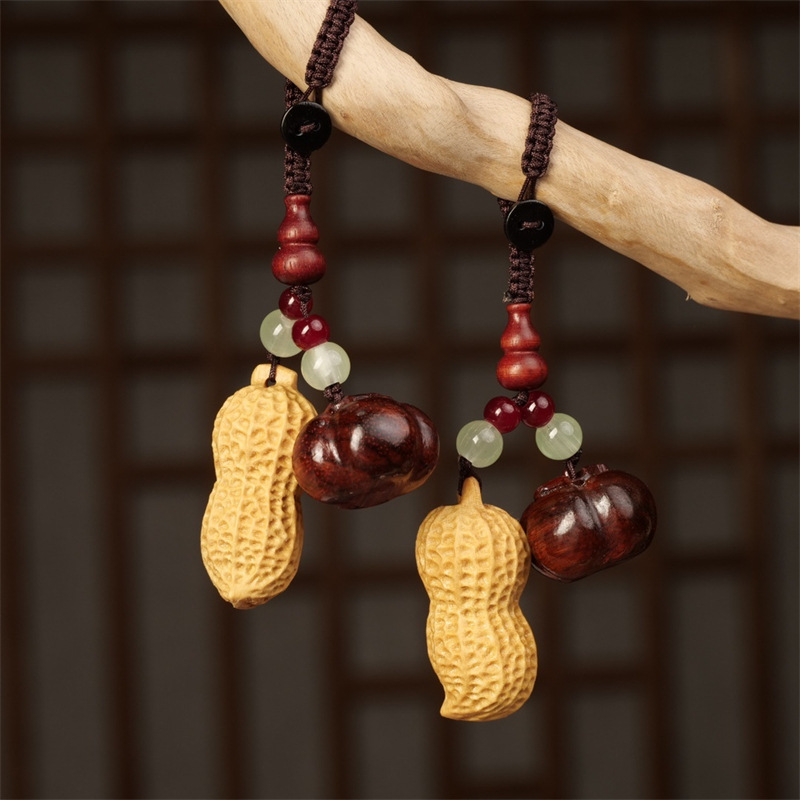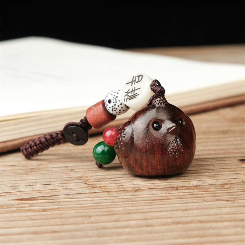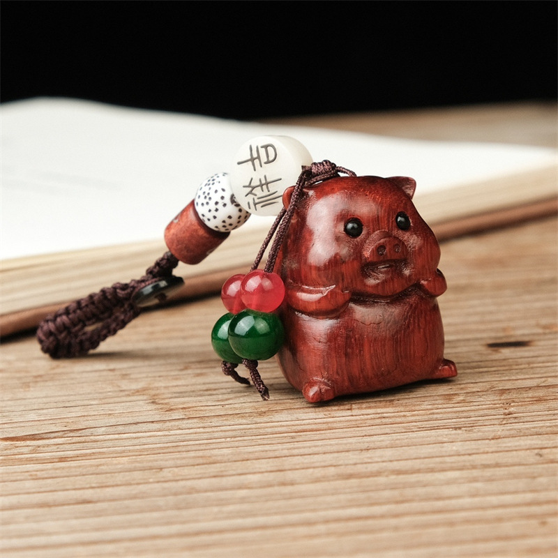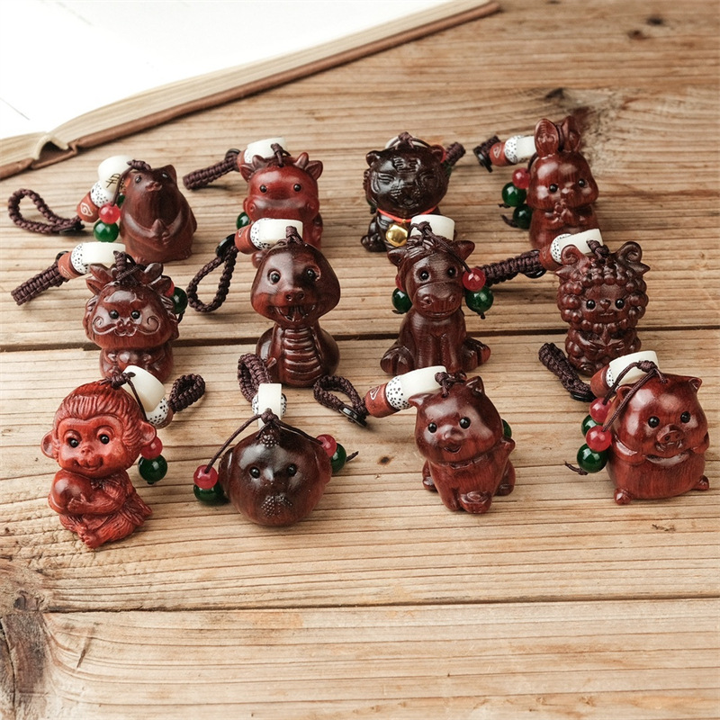 紫檀木龍年幸運十二生肖キーホルダー自動車ペンダント復古風12属相個性装飾カップル