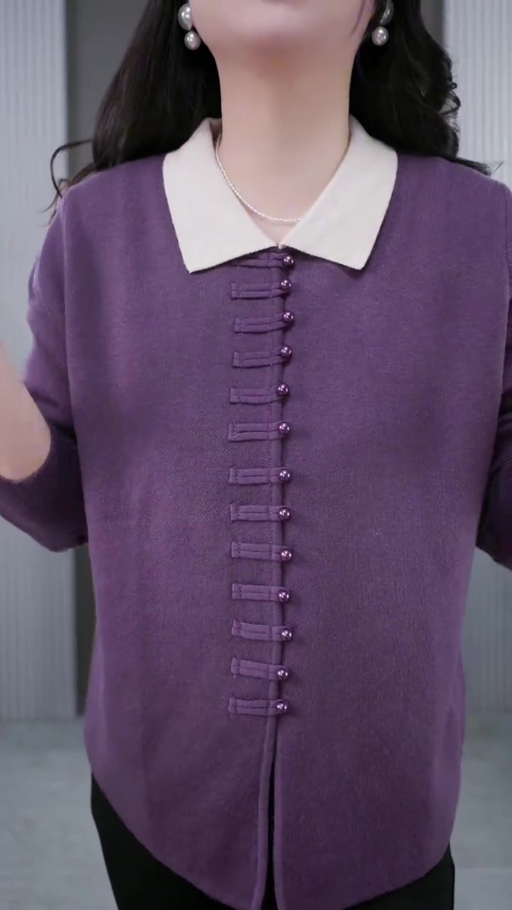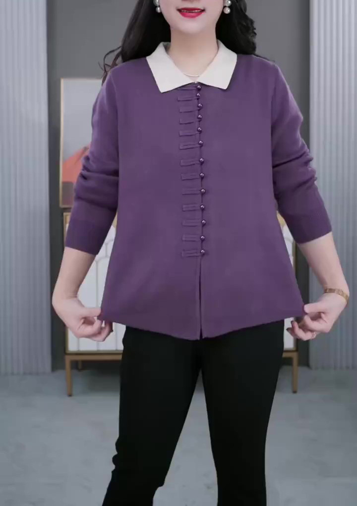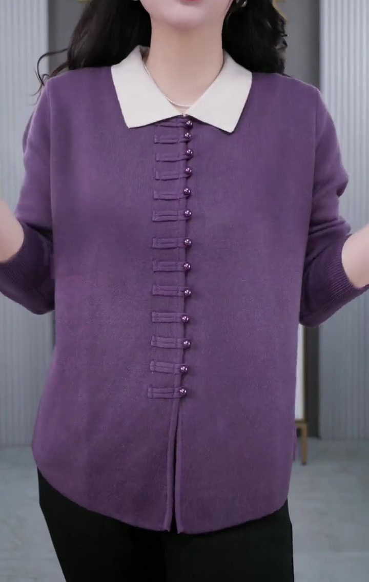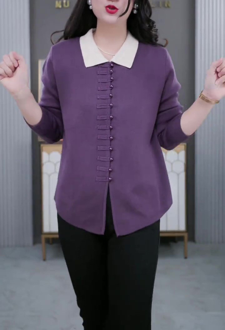 秋冬ニットの百合生中継の爆発的な襟は中年のお母さんの真珠のボタンのカジュアルな底のセーターの大きいサイズの婦人服です。
