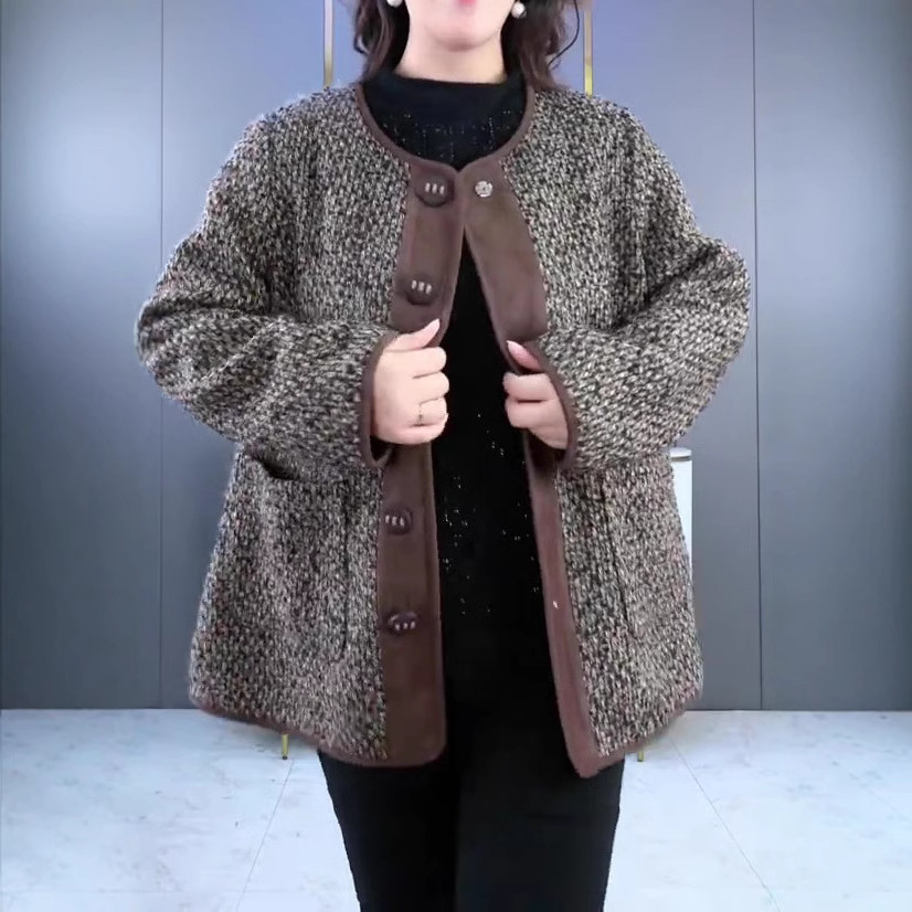 2024秋冬の軽熟百合外着の大きいサイズのゆったりしたスーツのカジュアルなベストの太ったMMは中年のお母さんの婦人服に乗ります。