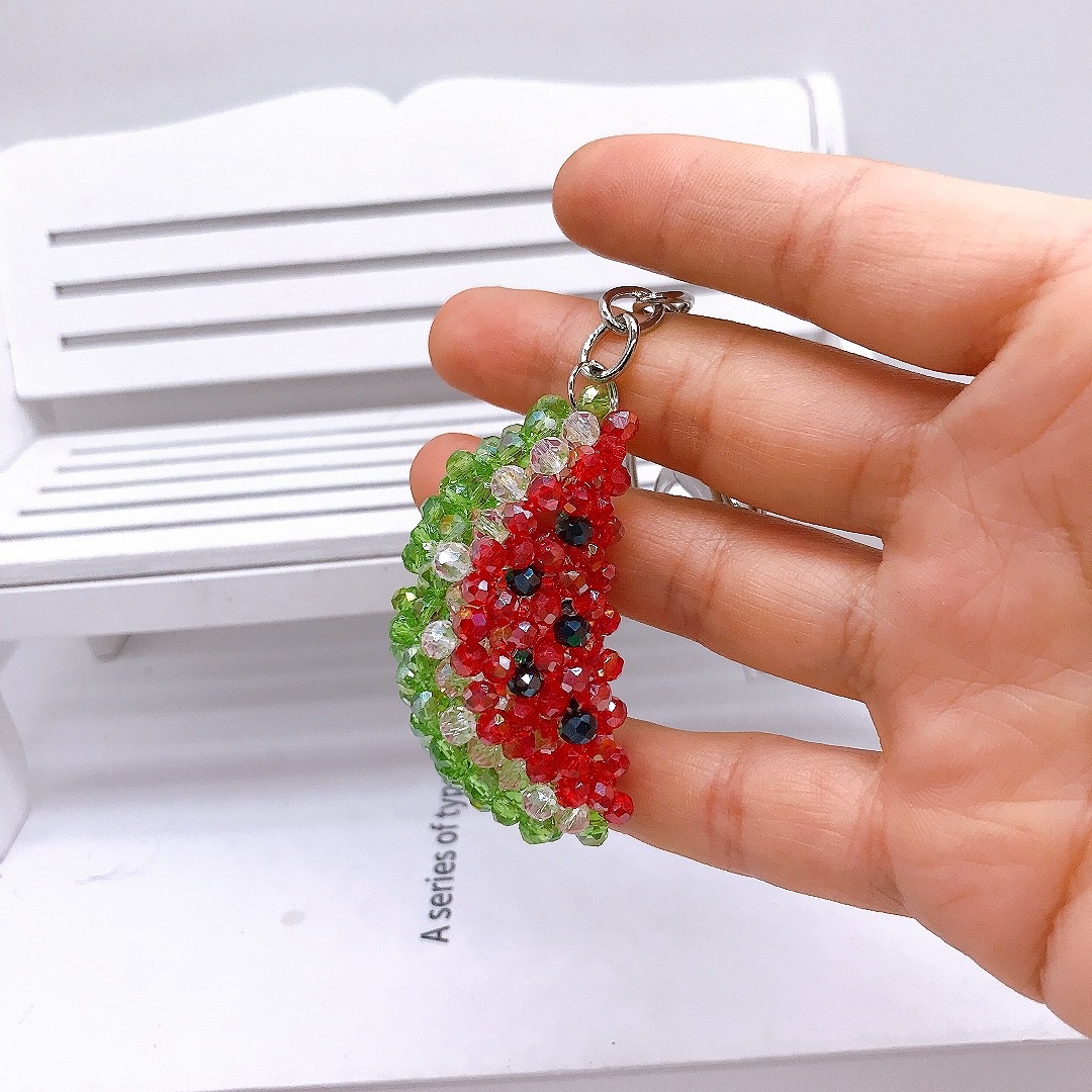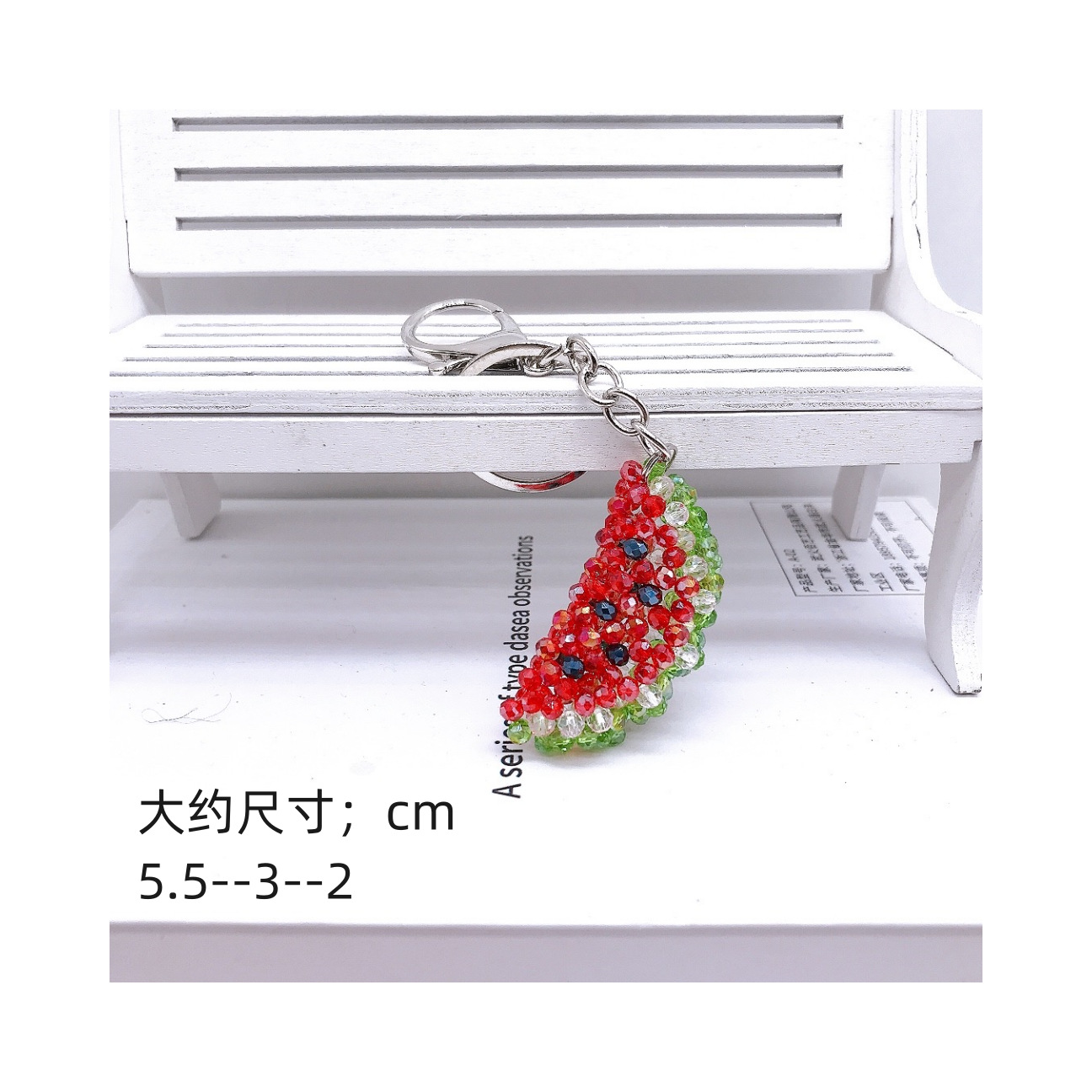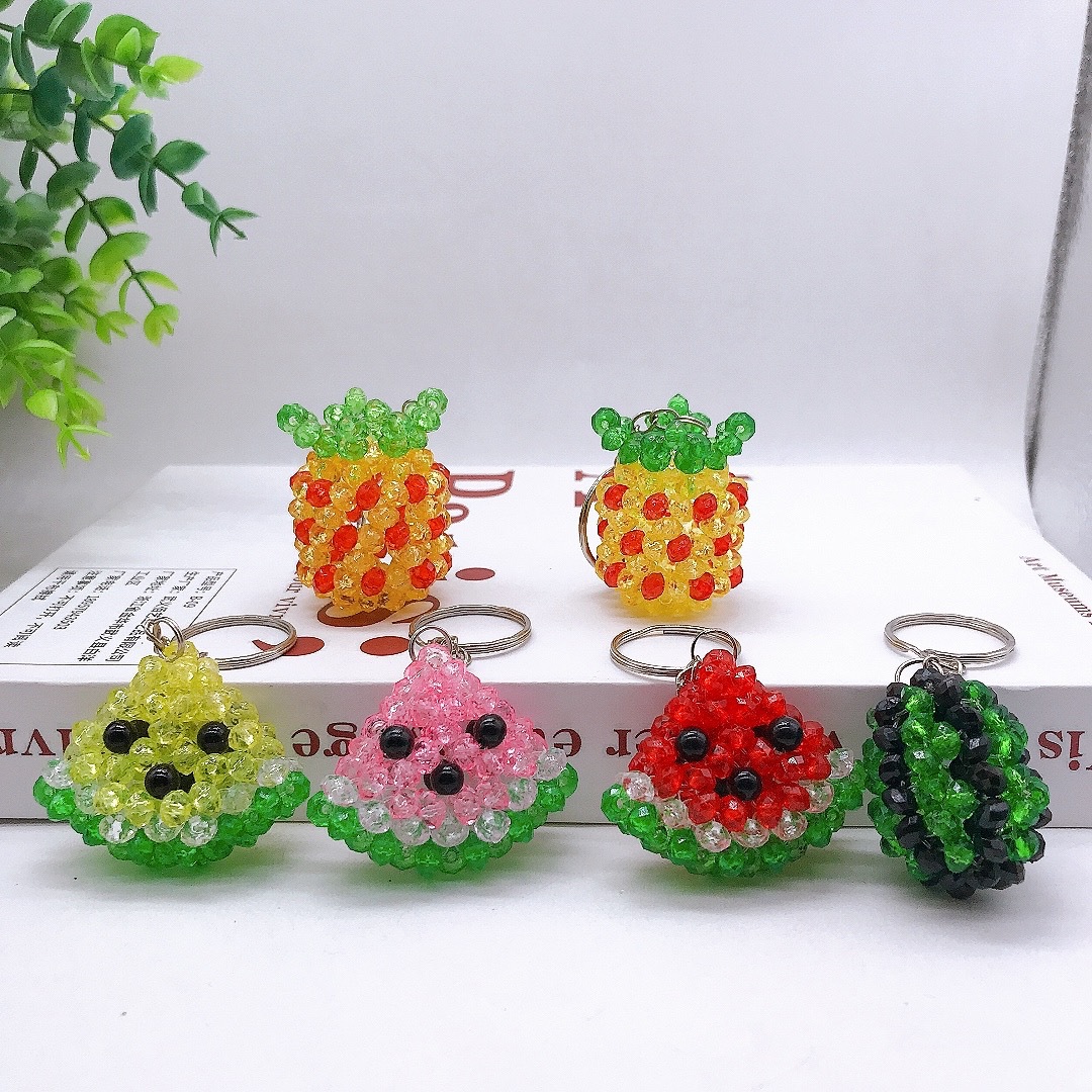 完成品のビーズで作ったパイナップルとスイカのスライス、手編みフルーツキーホルダー、子供用おもちゃ、バッグ飾り